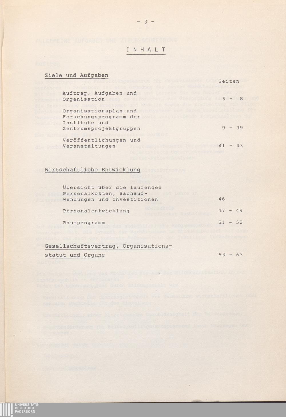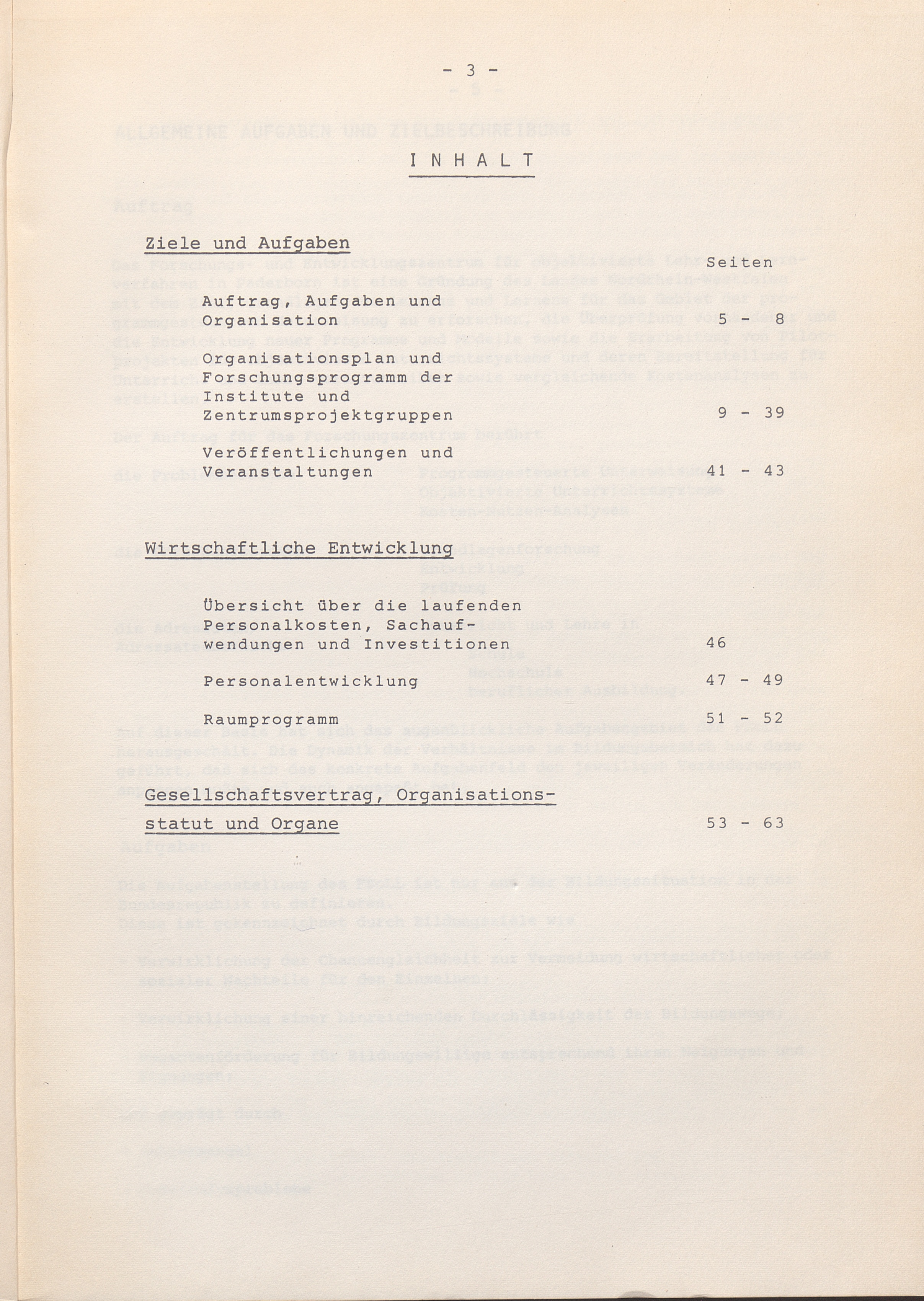 Organisationsplan und Forschungsprogramm der Institute und Zentrumsprojektgruppen