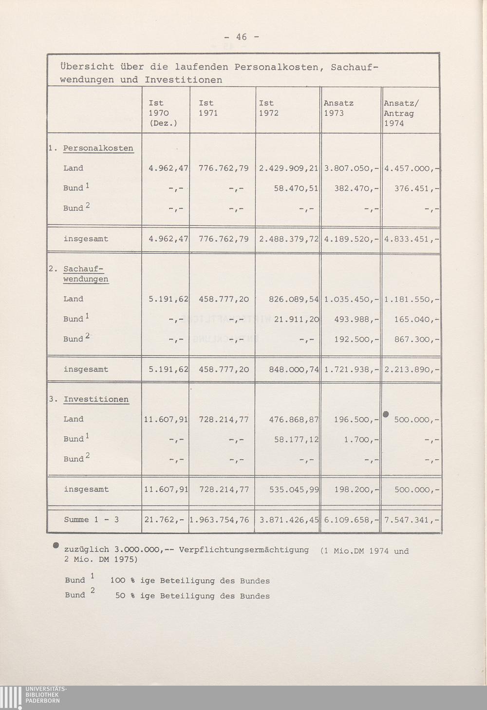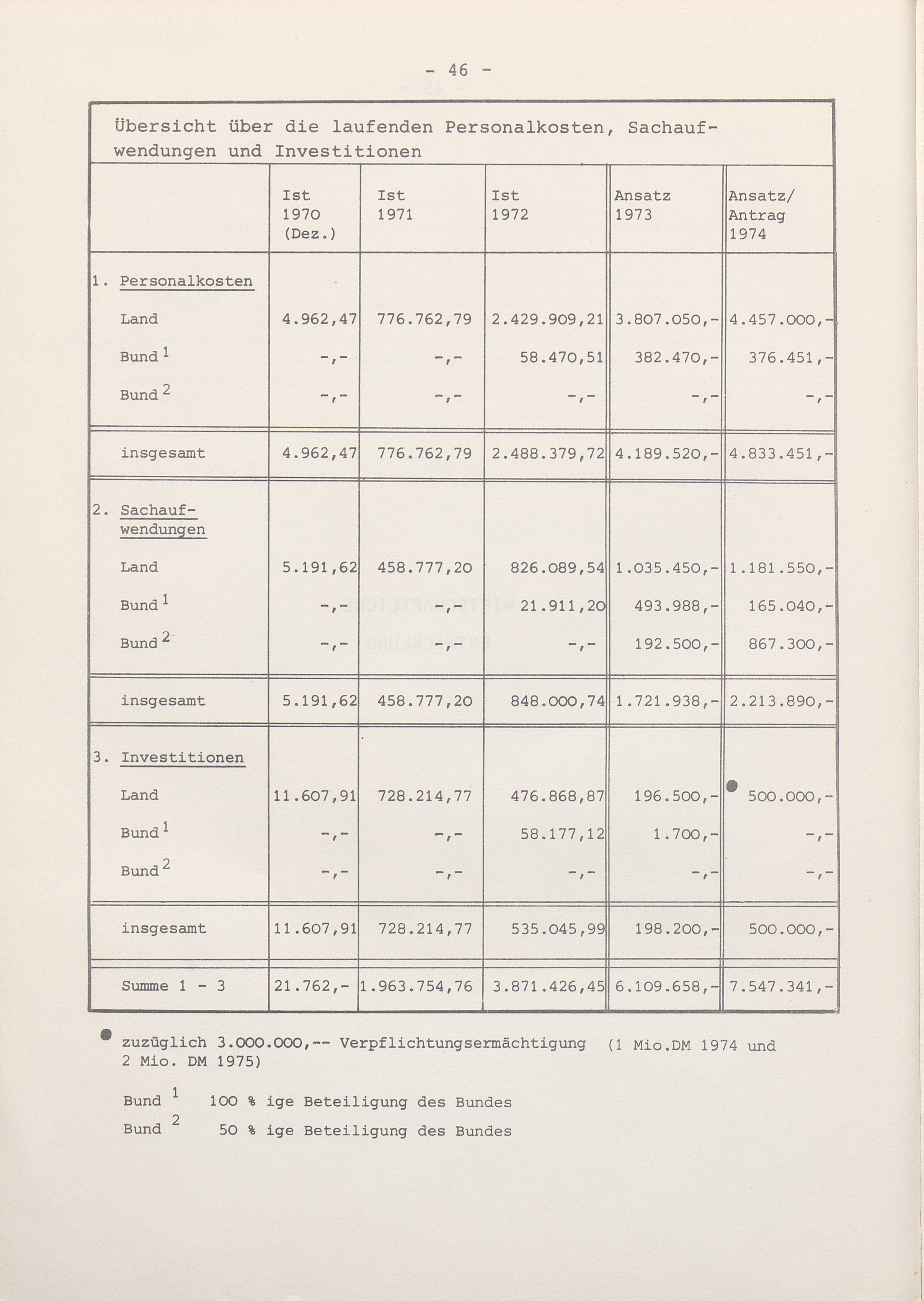 Übersicht über die laufenden Personalkosten, Sachaufwendungen und Investitionen