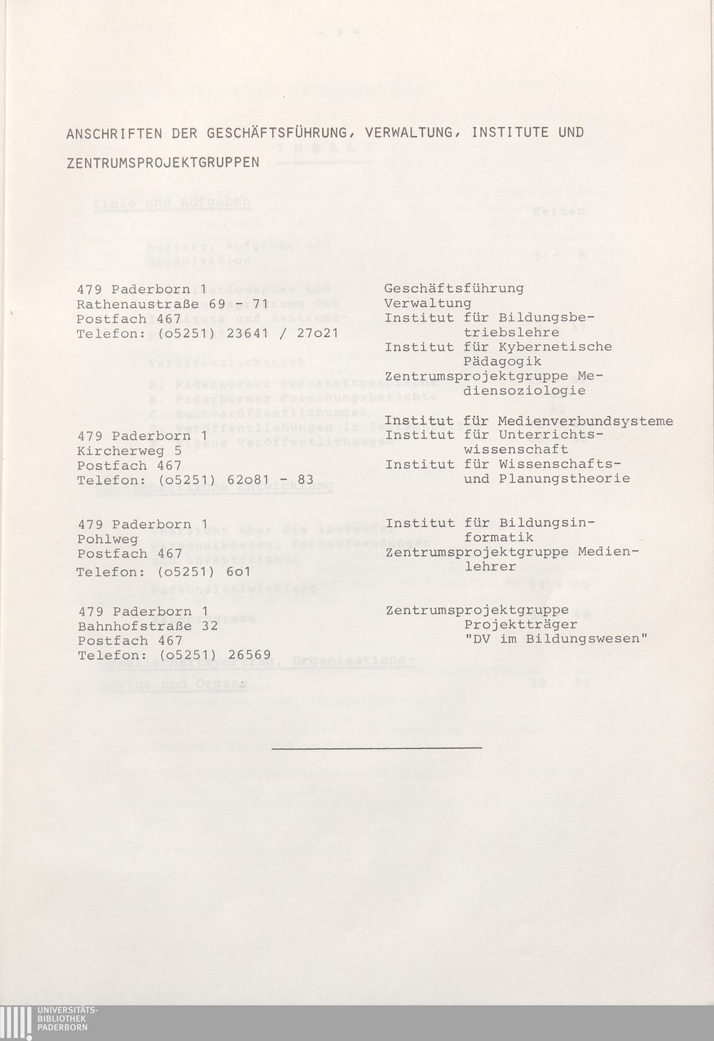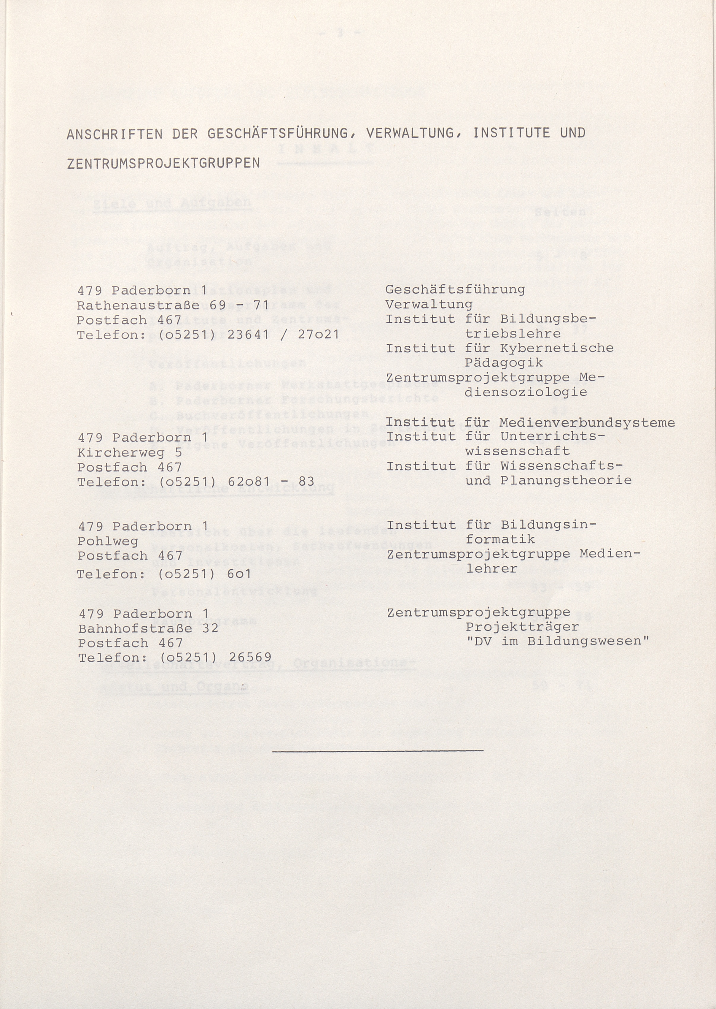 Anschriften der Geschäftsführung, Verwaltung, Institute und Zentrumsprojektgrupp[...]
