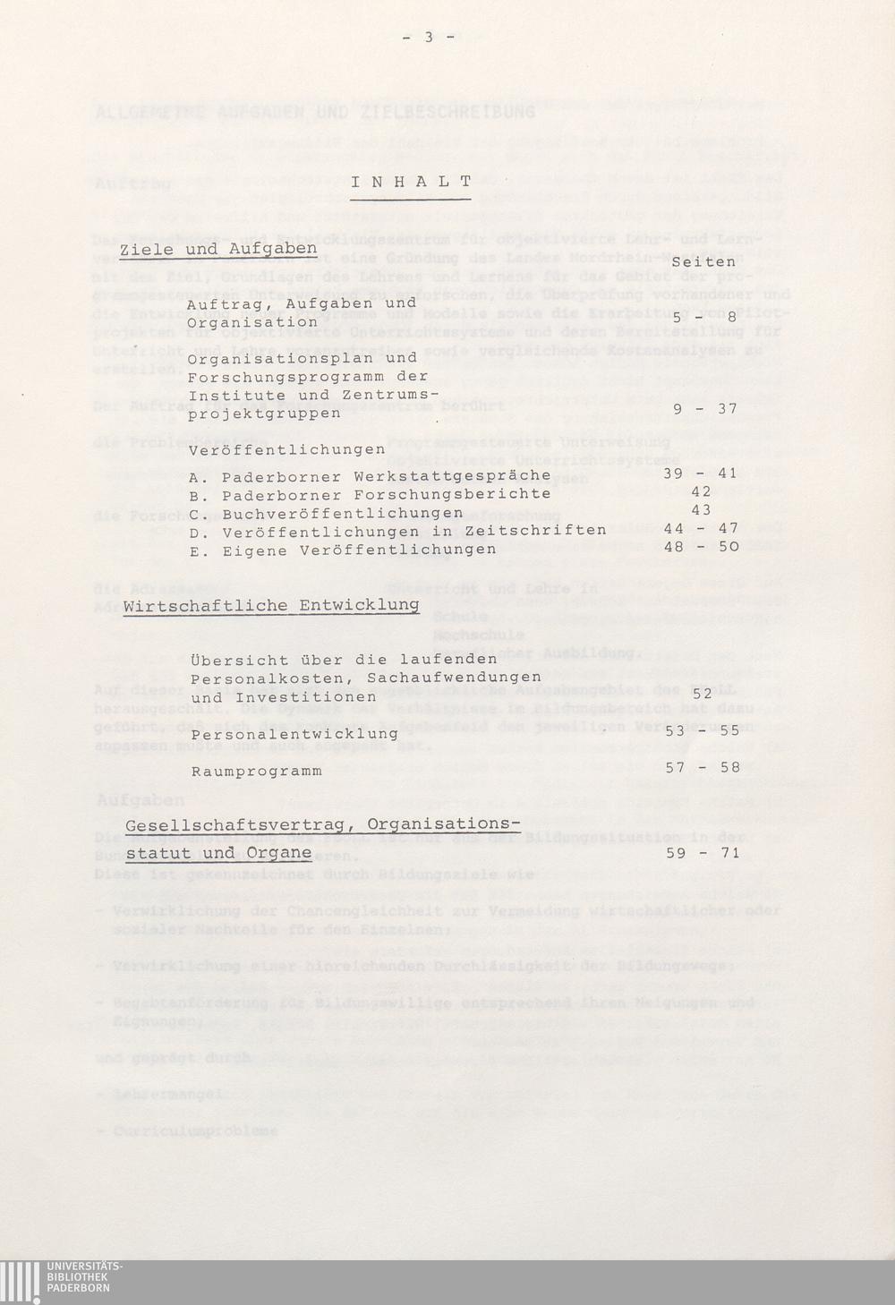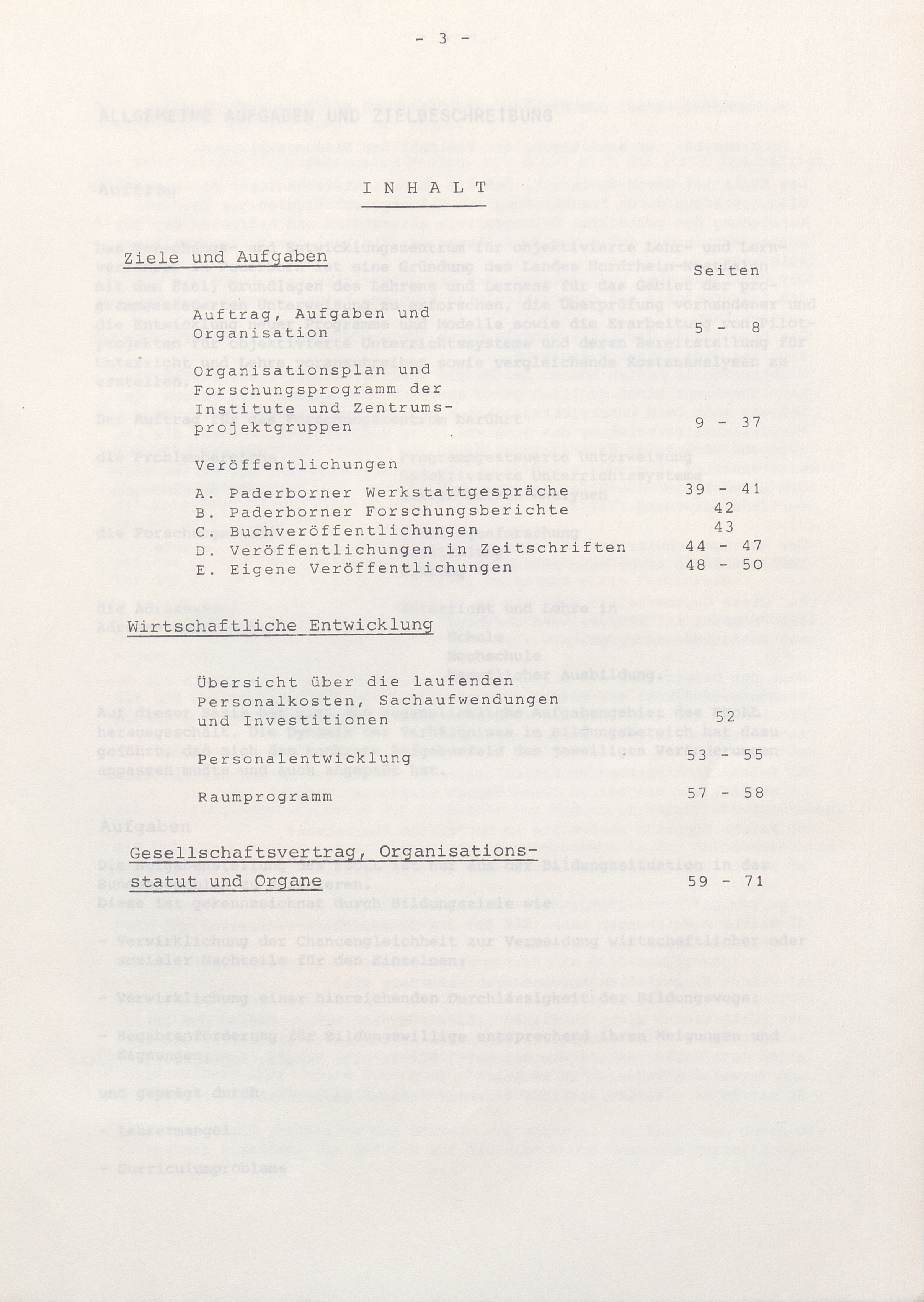 Organisationsplan und Forschungsprogramm der Institute und Zentrumsprojektgruppen