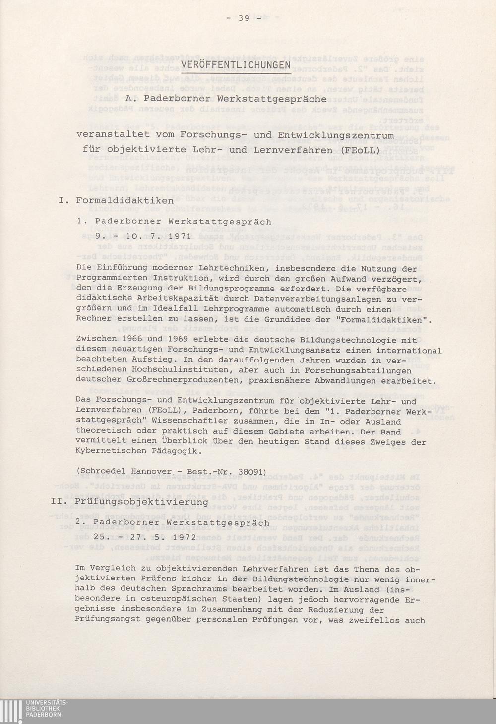 Organisationsplan und Forschungsprogramm der Institute und Zentrumsprojektgruppen