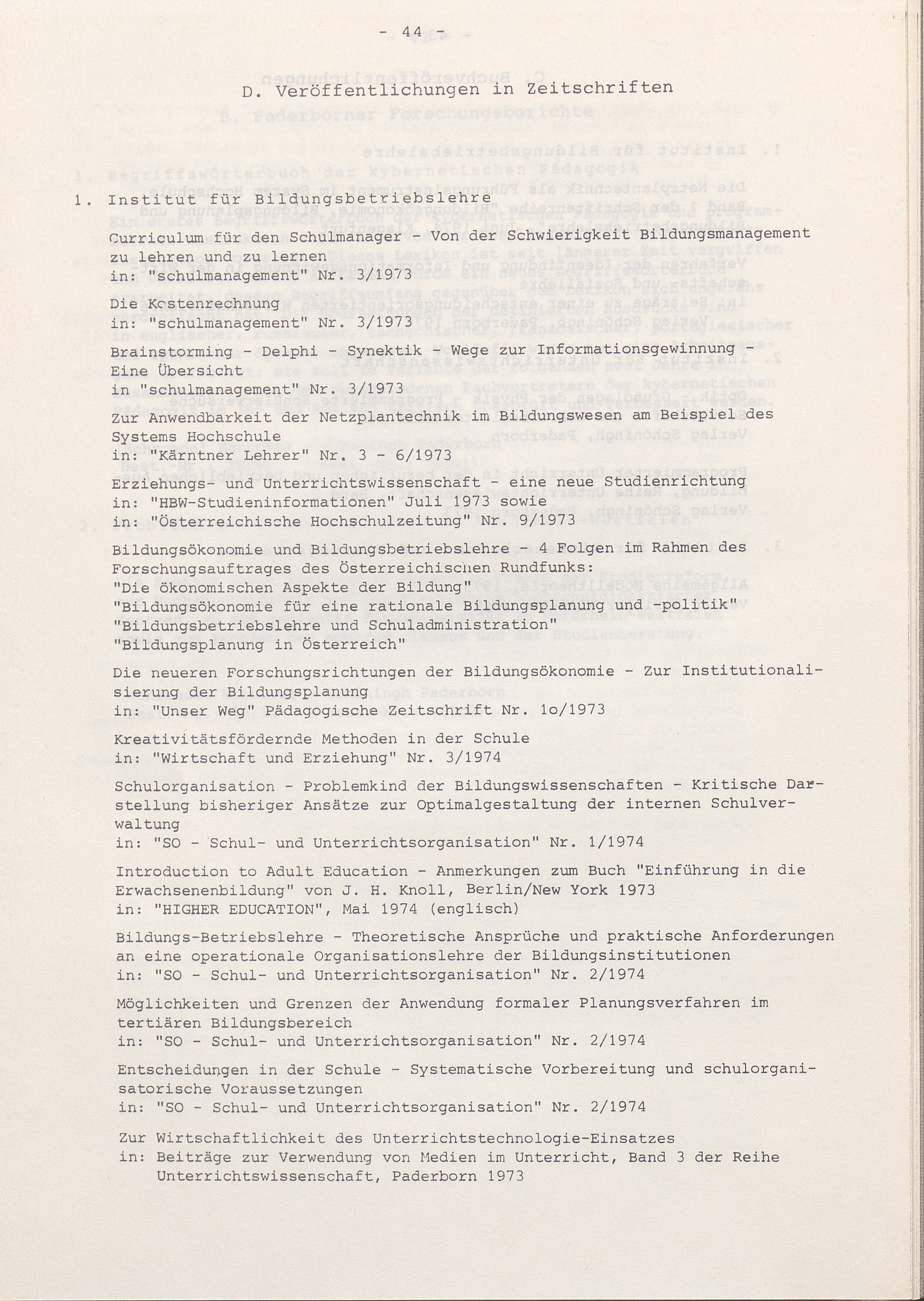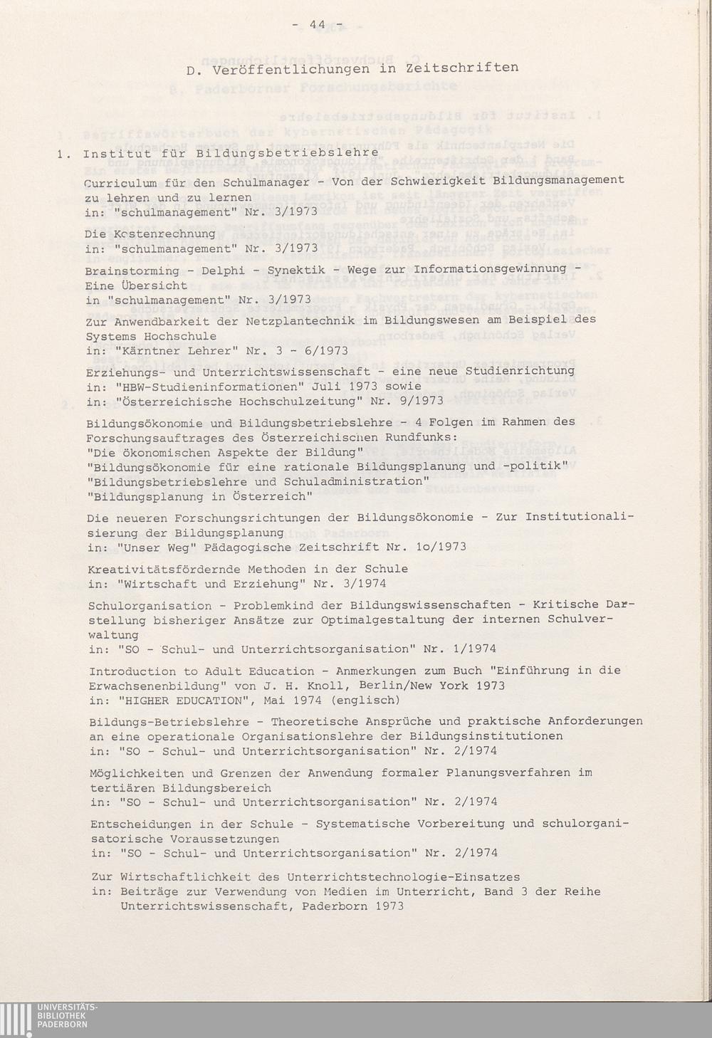 Organisationsplan und Forschungsprogramm der Institute und Zentrumsprojektgruppen
