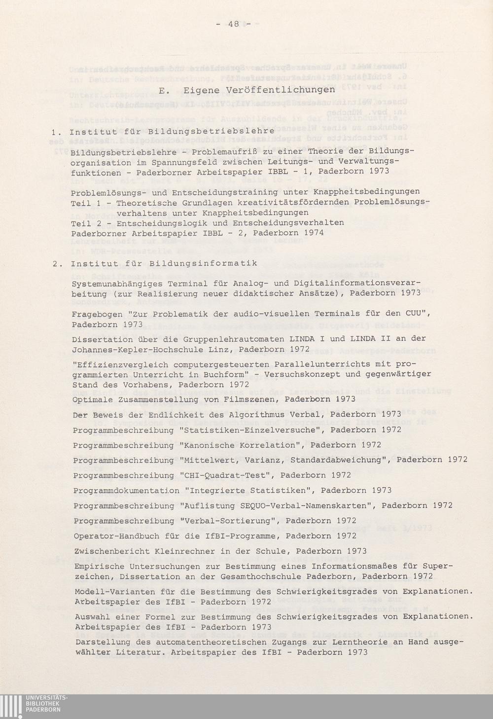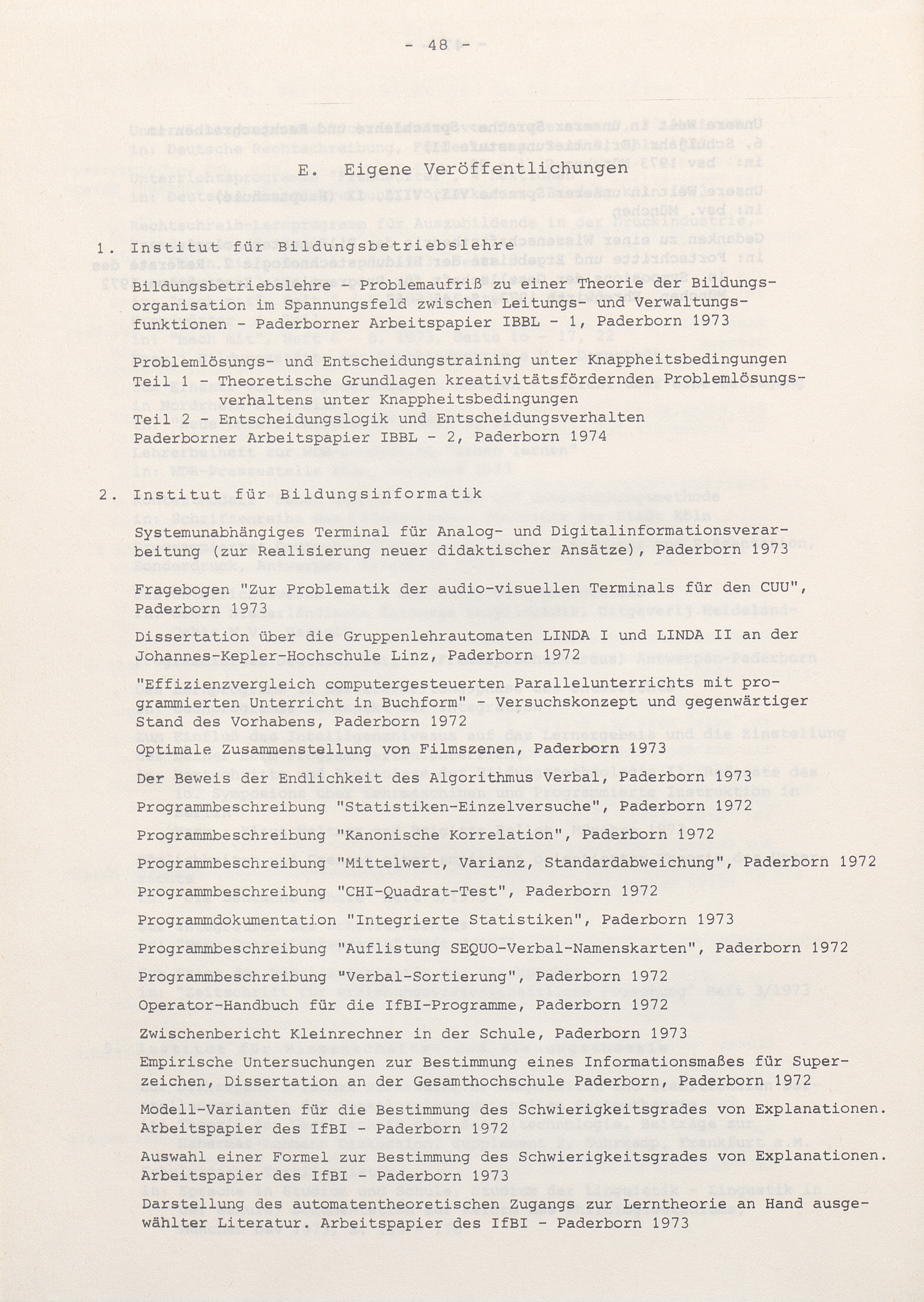 Organisationsplan und Forschungsprogramm der Institute und Zentrumsprojektgruppen