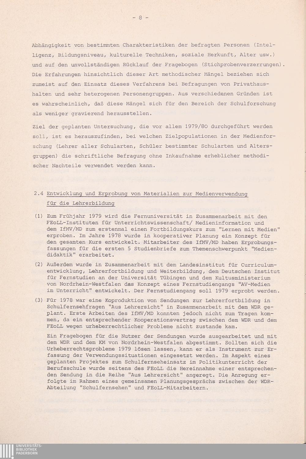 Forschungsbericht des FEoLL-Instituts für Medienverbund, Mediendidaktik
