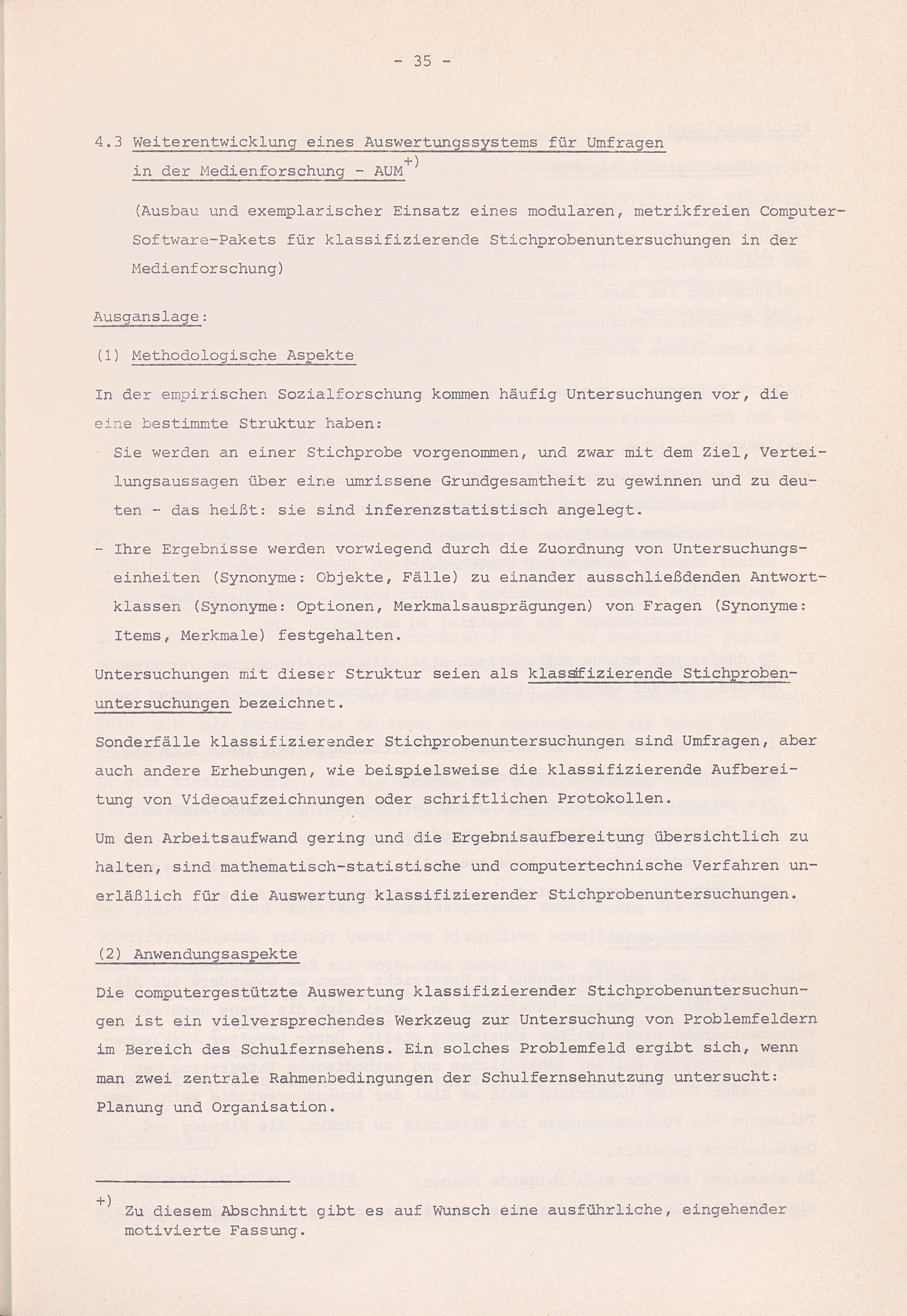3.4 Weiterentwicklung empirischer Methoden der Medienforschung - verbunden mit einer Anwendungsstudie zur organisatorischen Problematik des Schulfernsehens