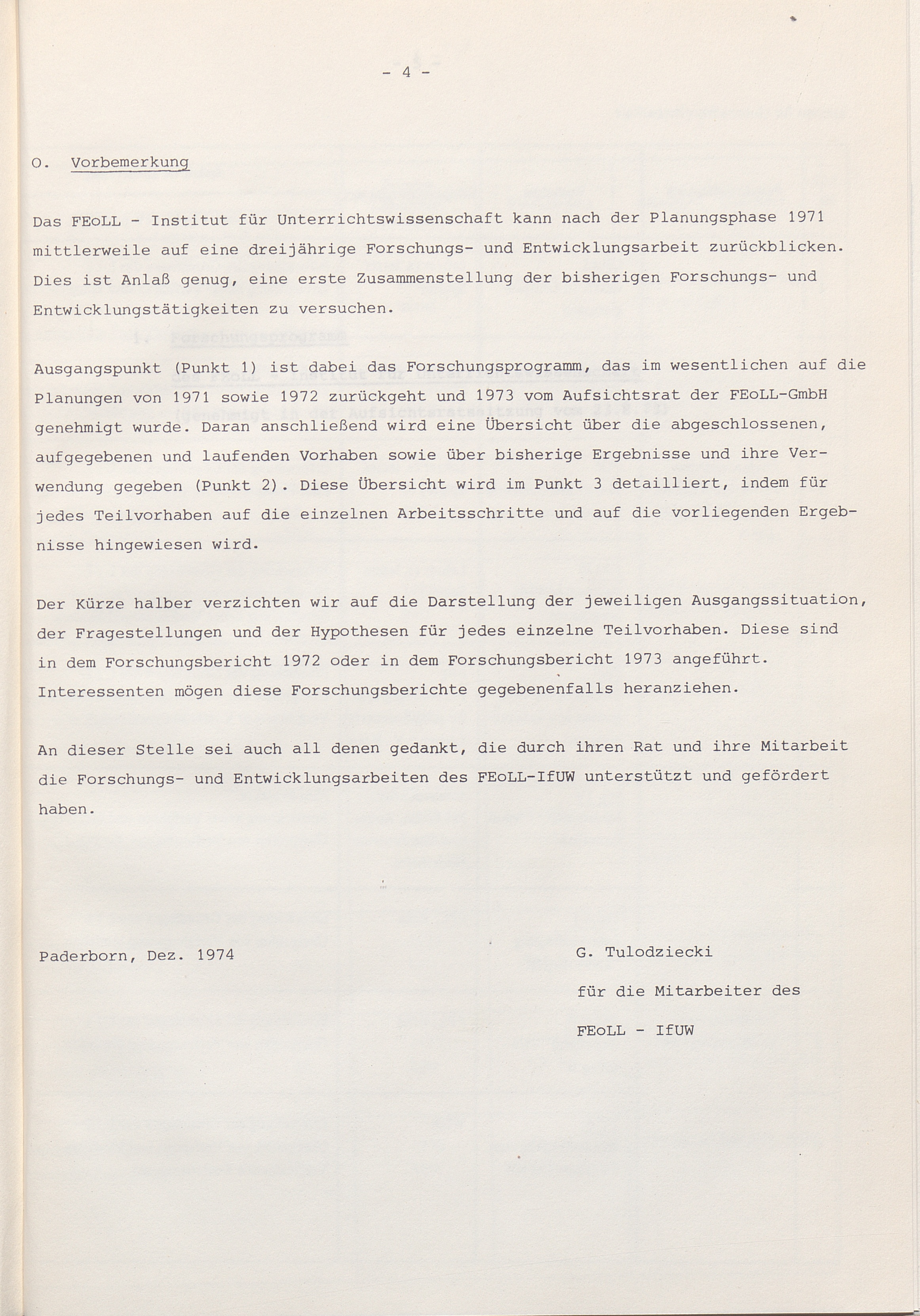 1. Forschungsprogramm des FEoLL-Instituts für Unterrichtswissenschaft