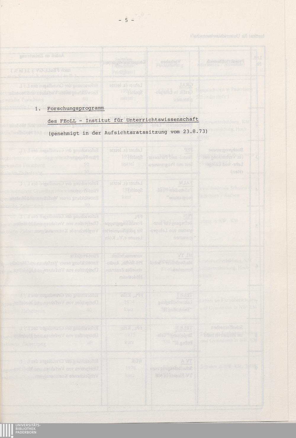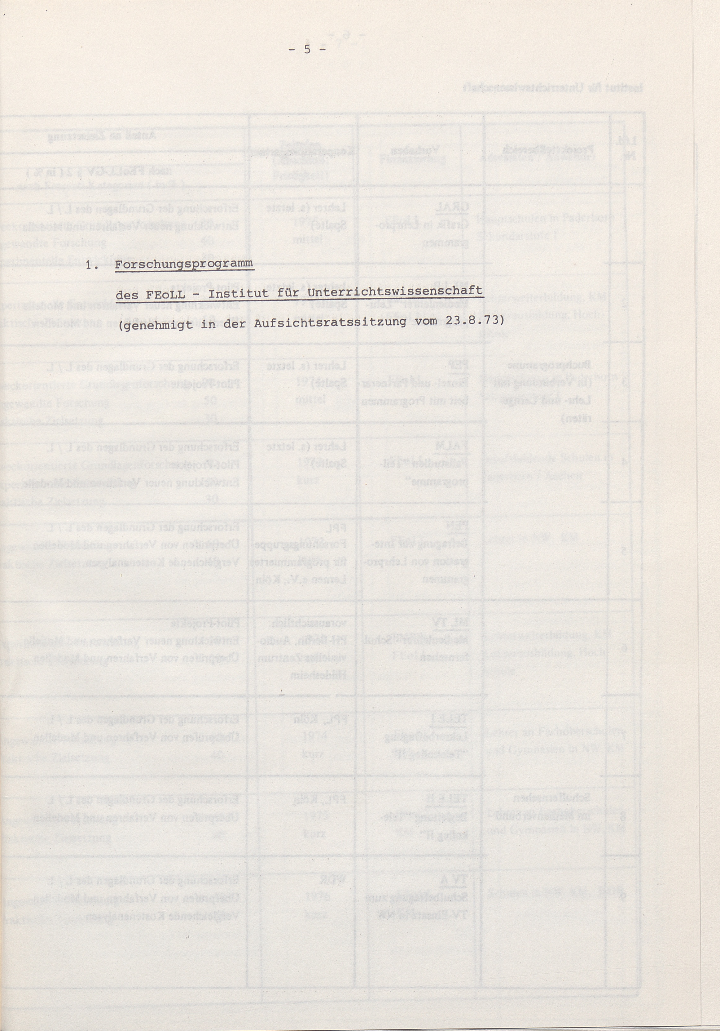 1. Forschungsprogramm des FEoLL-Instituts für Unterrichtswissenschaft