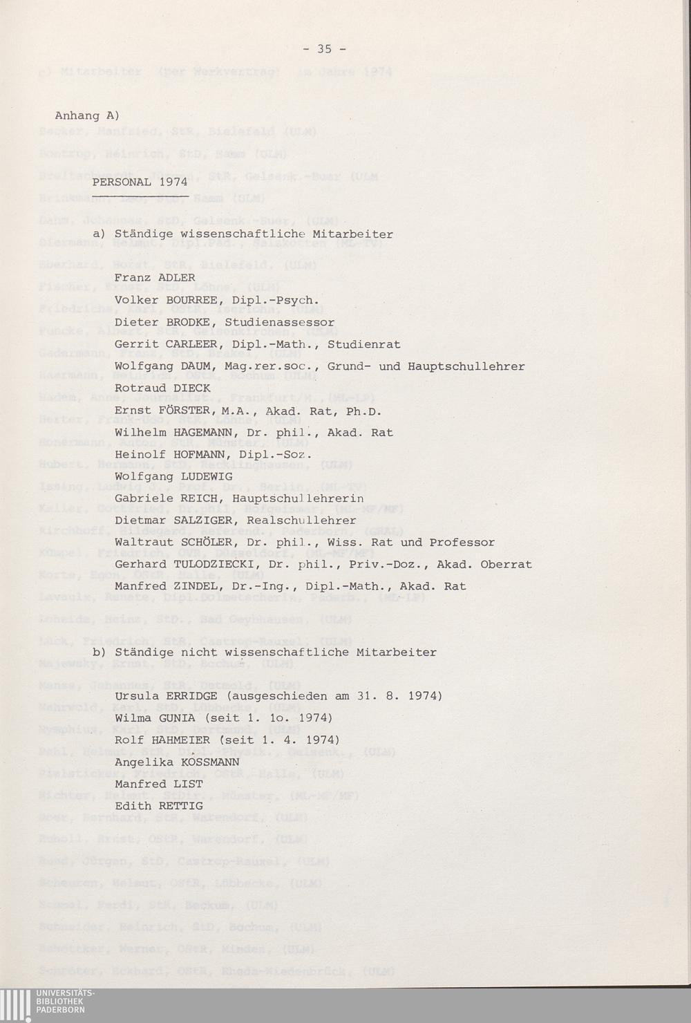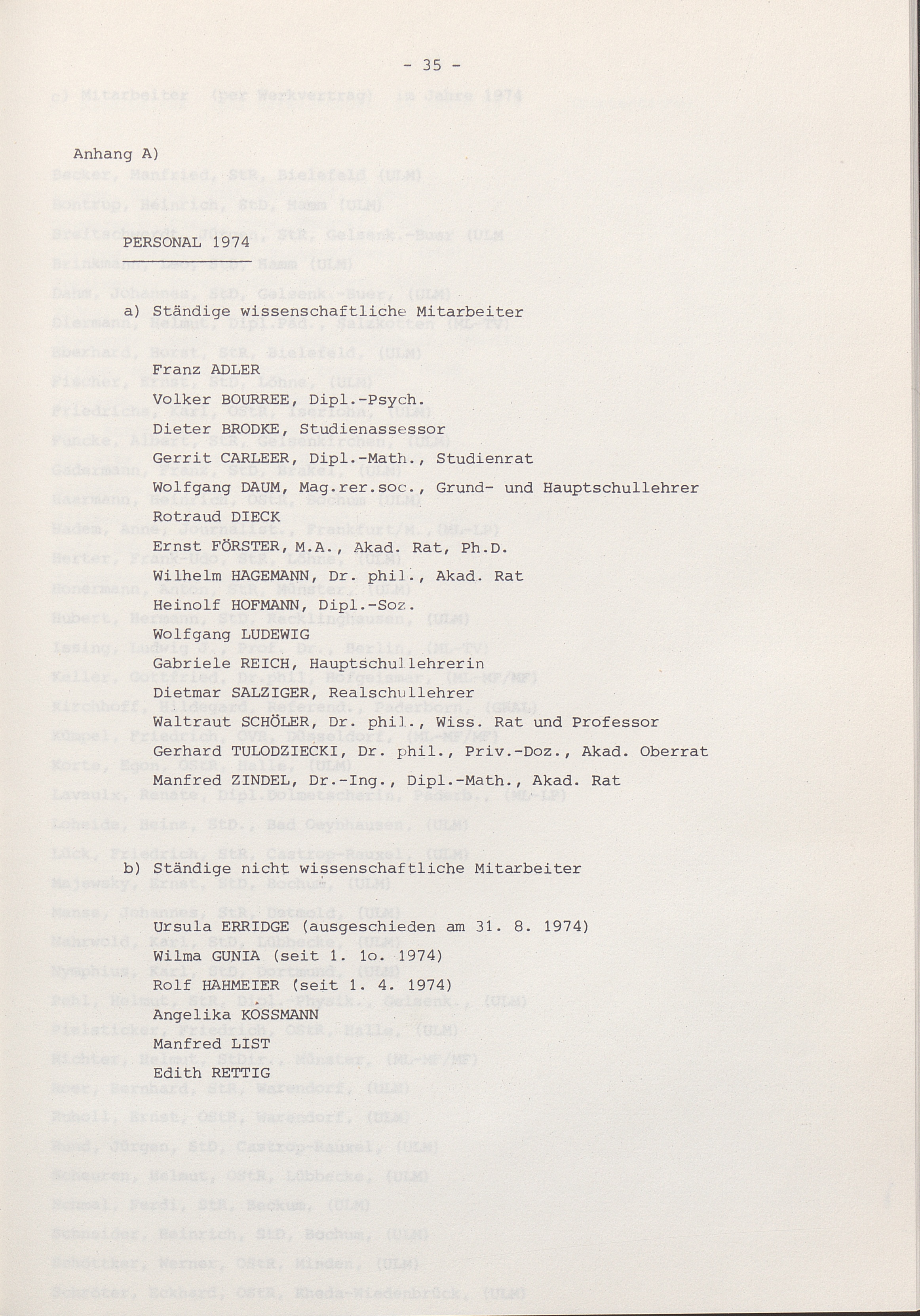 Anhang A: Personal 1974