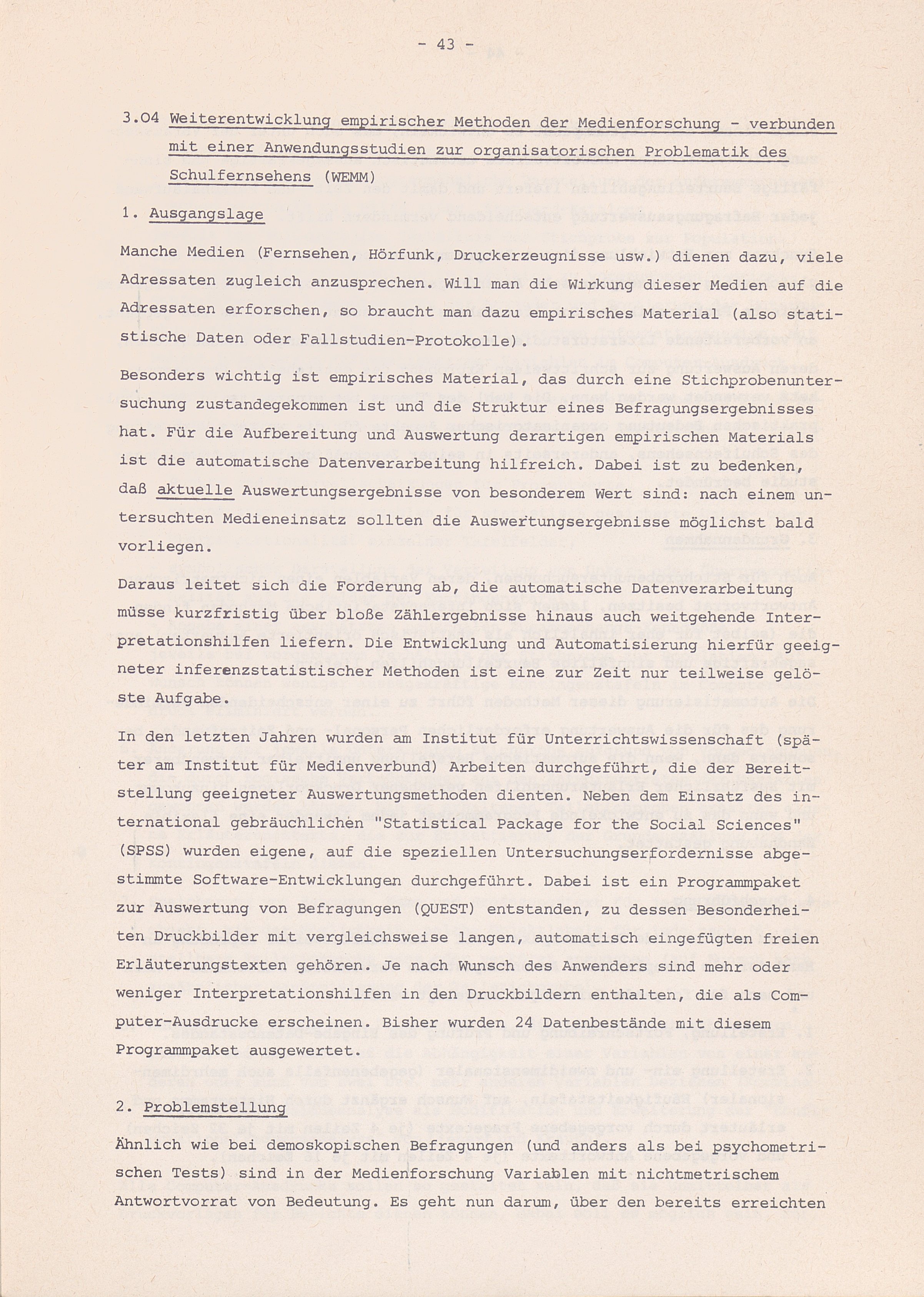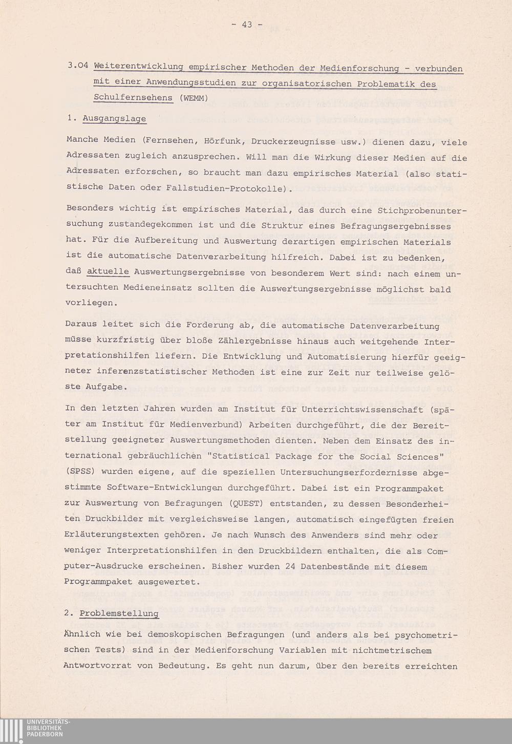 3.04 Weiterentwicklung empirischer Methoden der Medienforschung - verbunden mit einer[...]