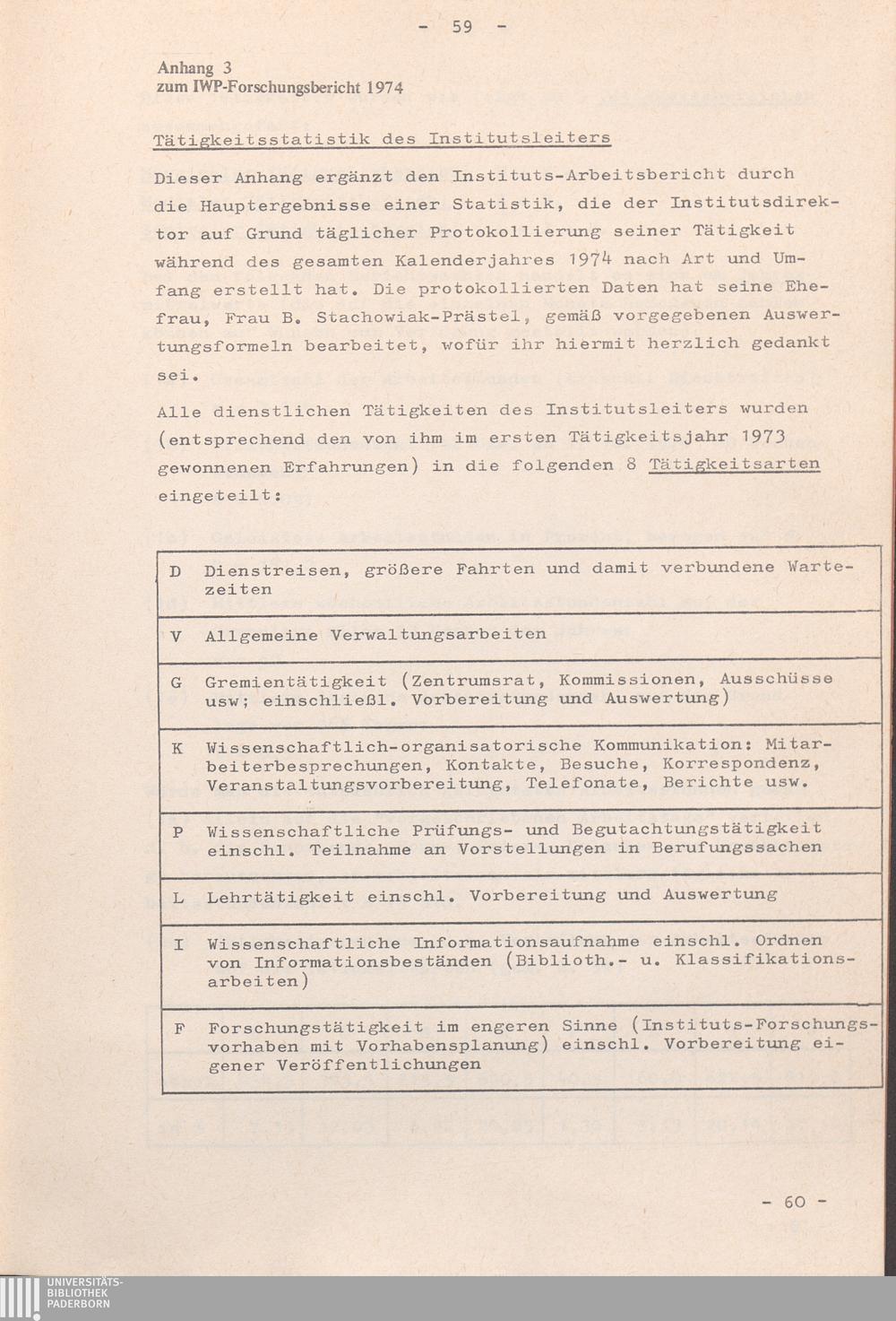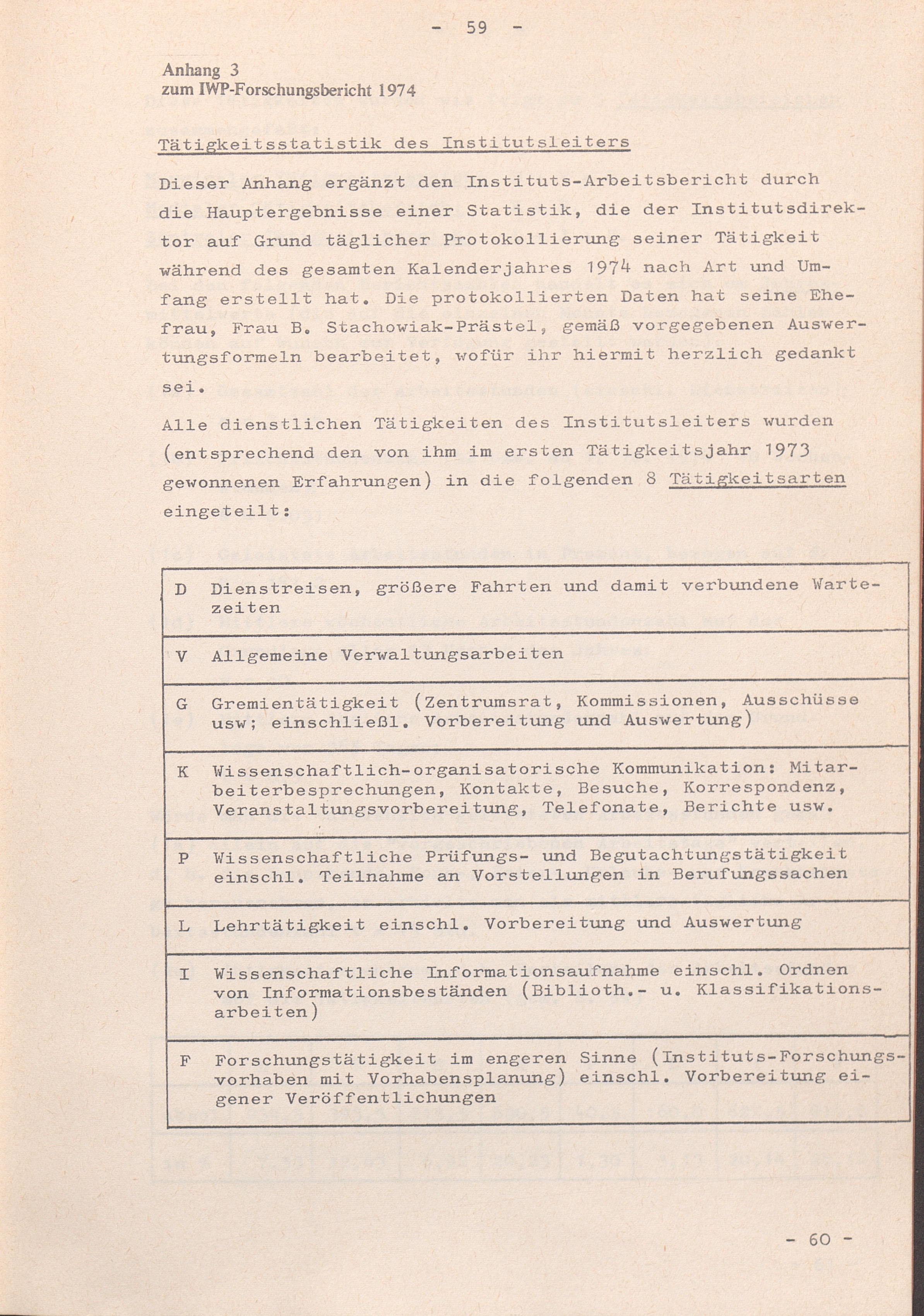 Anhang 3: Tätigkeitsstatistik des Institutsleiters