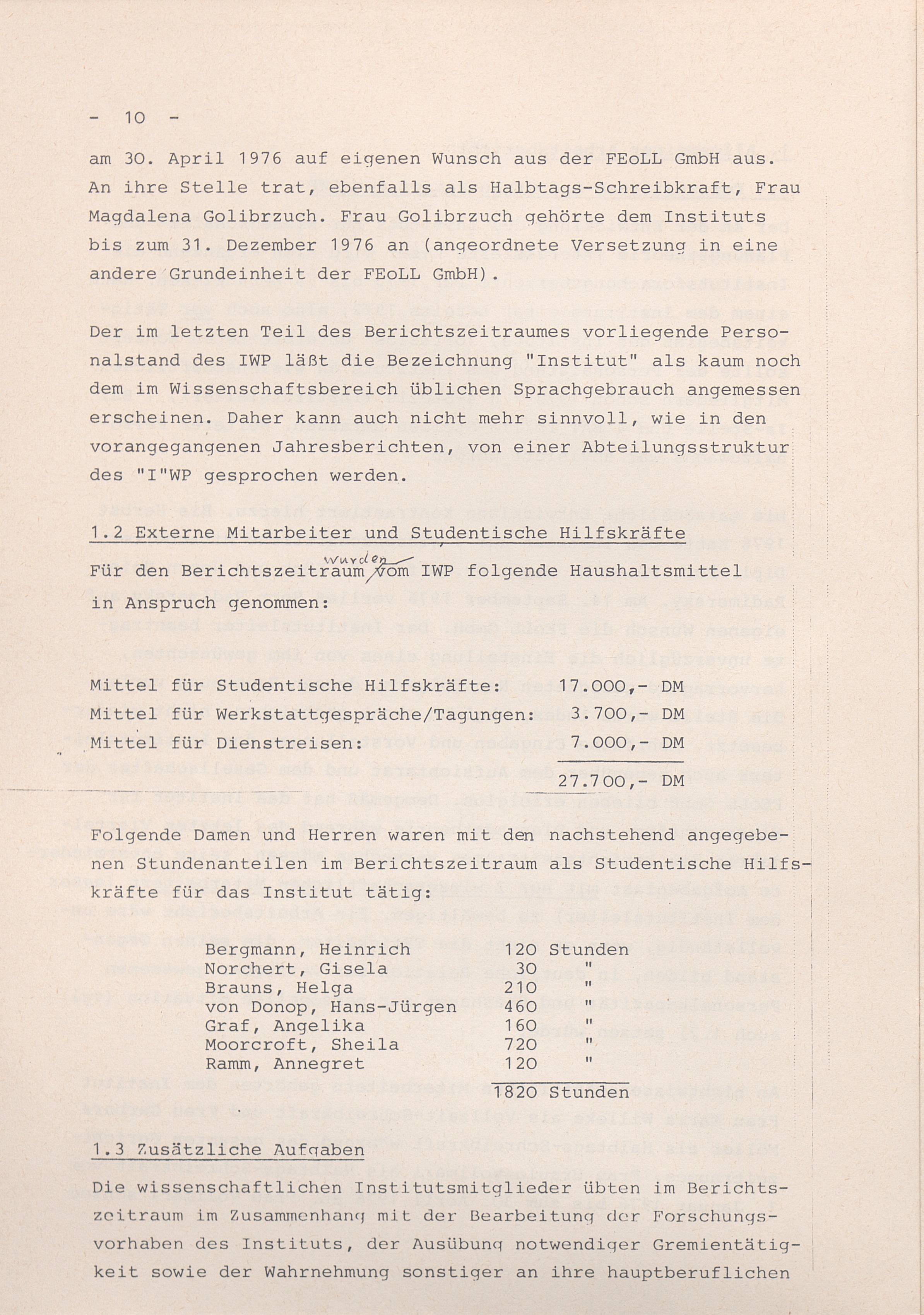 1.1 Personalstand und Organisation des IWP