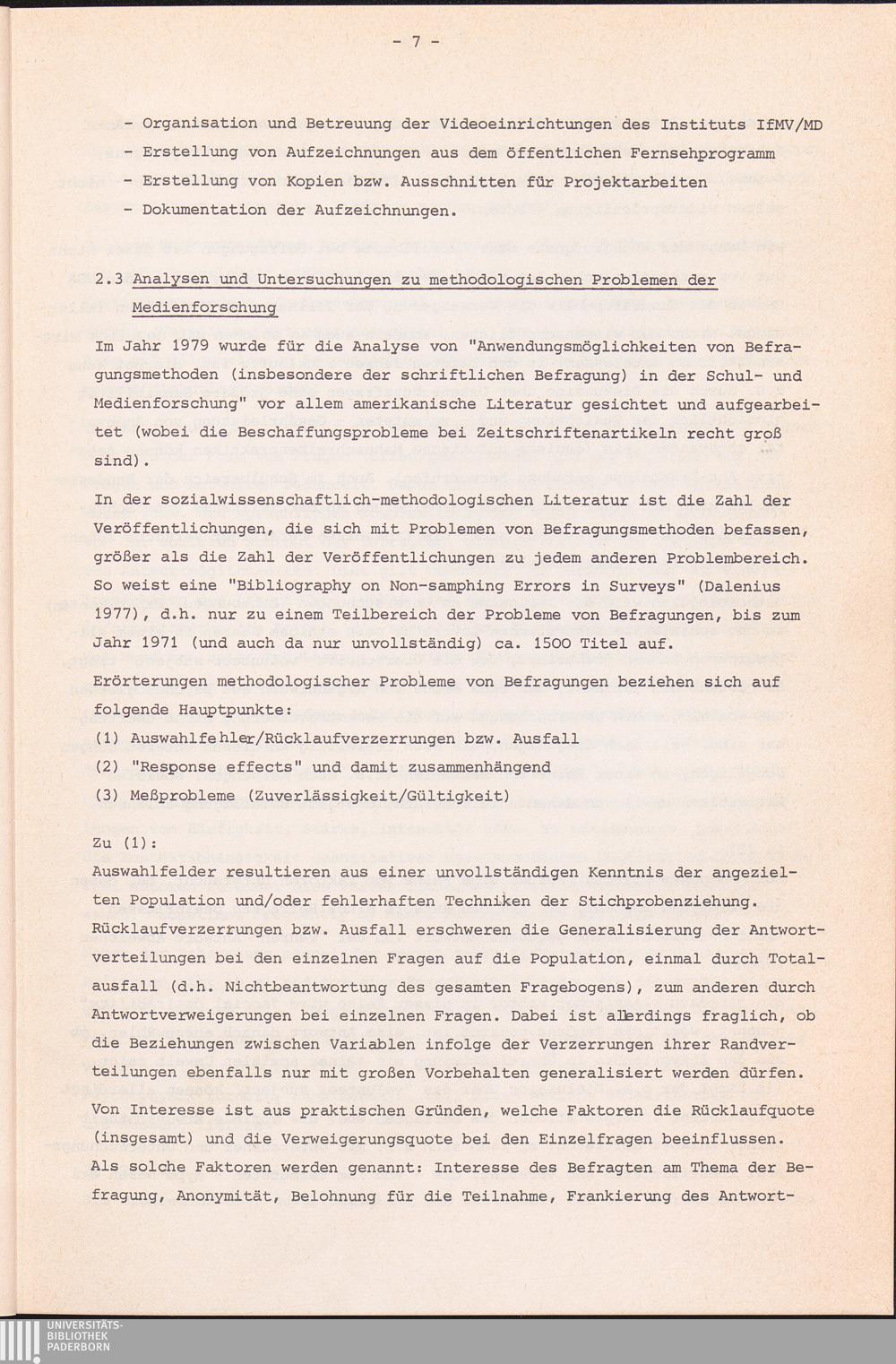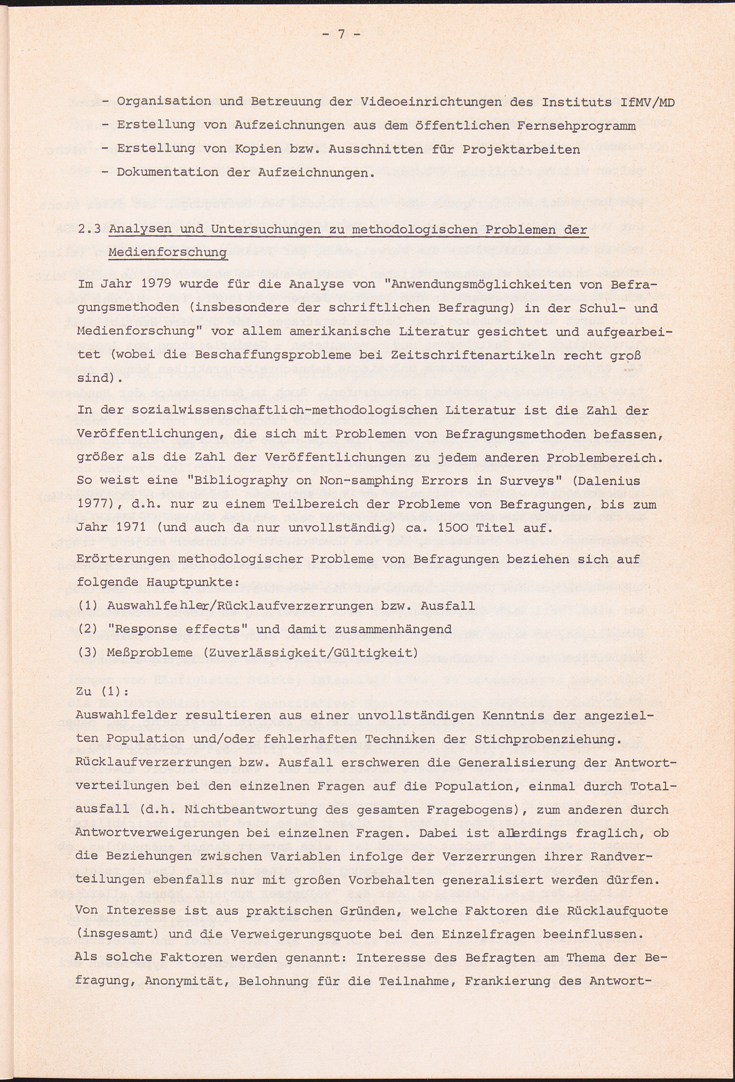 2.3 Analysen und Untersuchungen zu methodologischen Problemen der Medienforschung