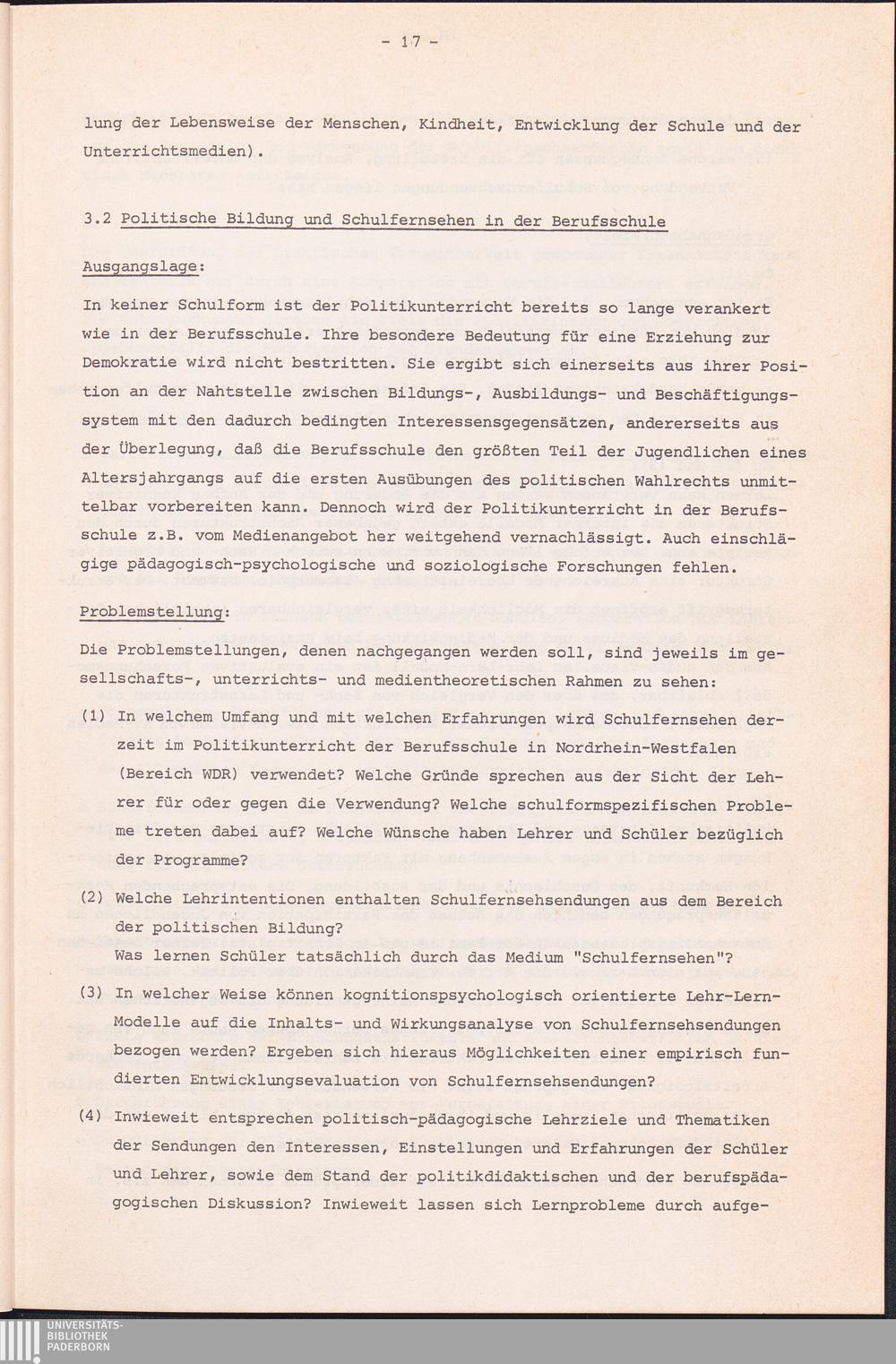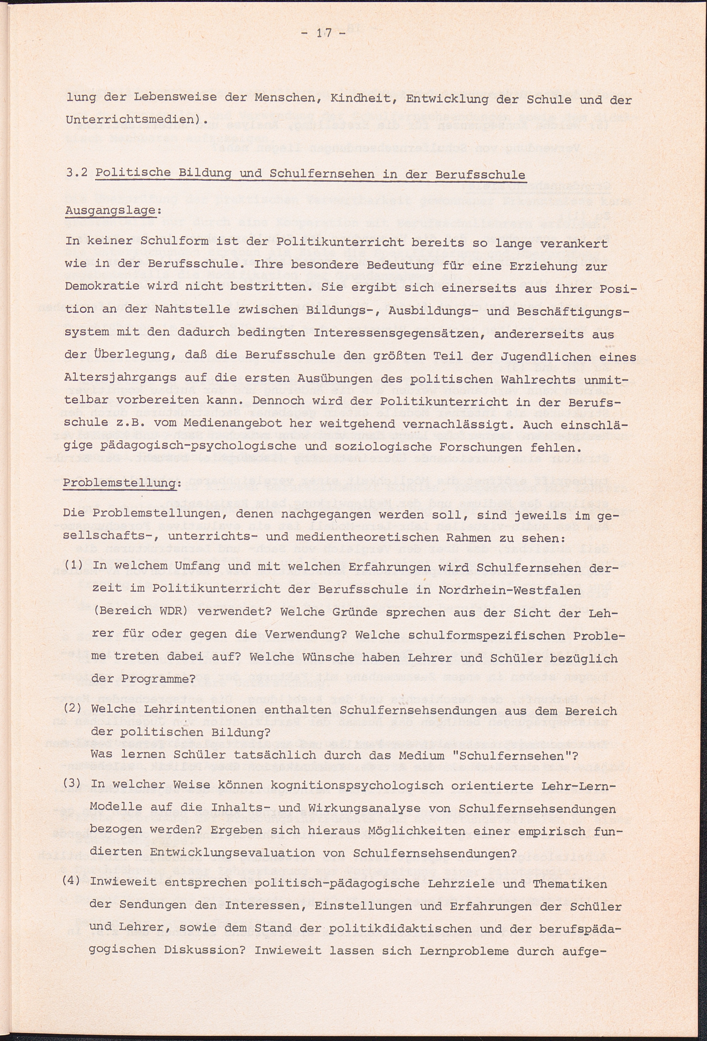 3.2 Politische Bildung und Schulfernsehen in der Berufsschule