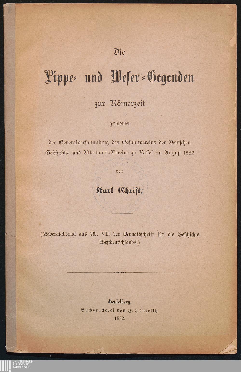 Die Lippe- und Weser-Gegenden zur Römerzeit / von Karl Christ