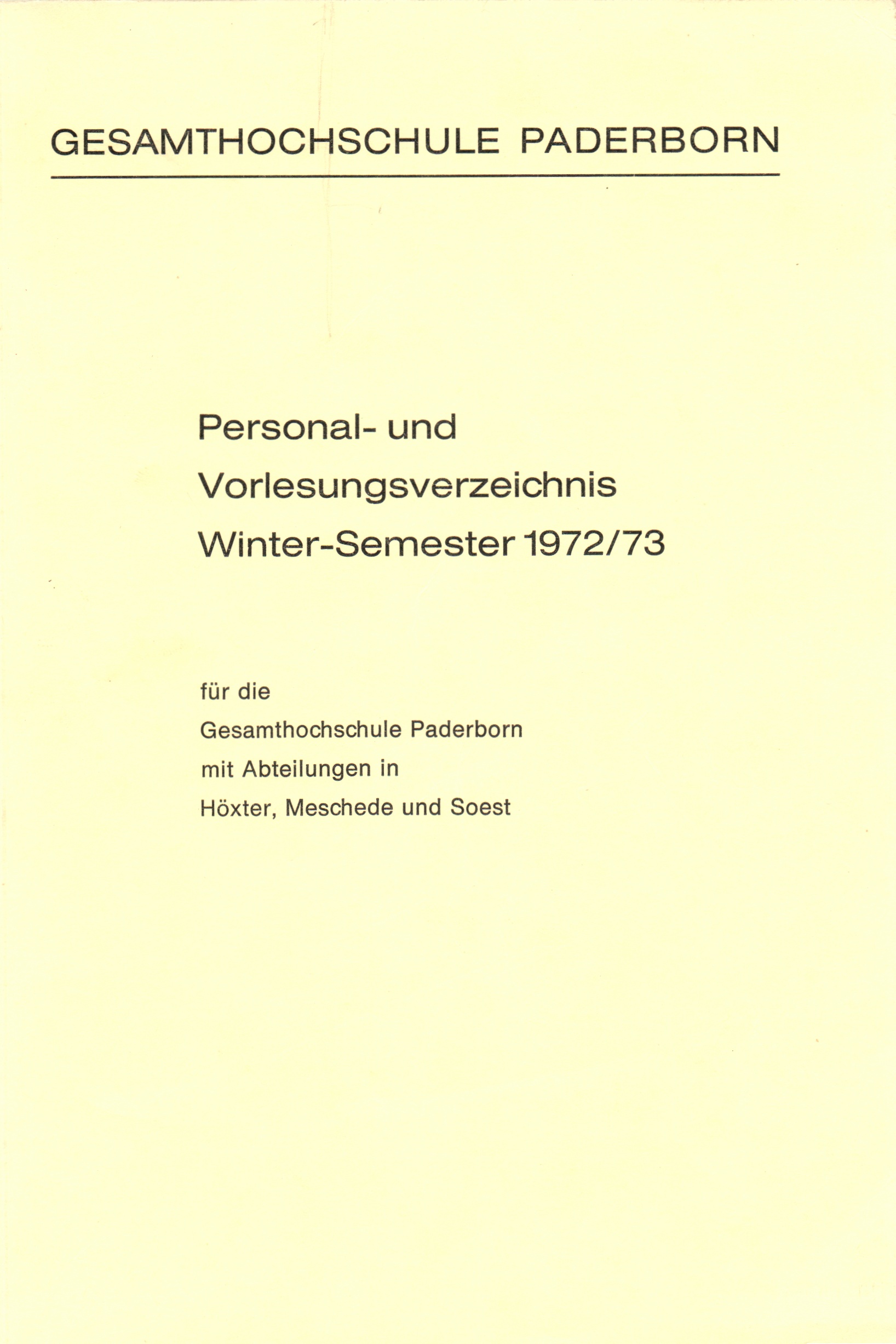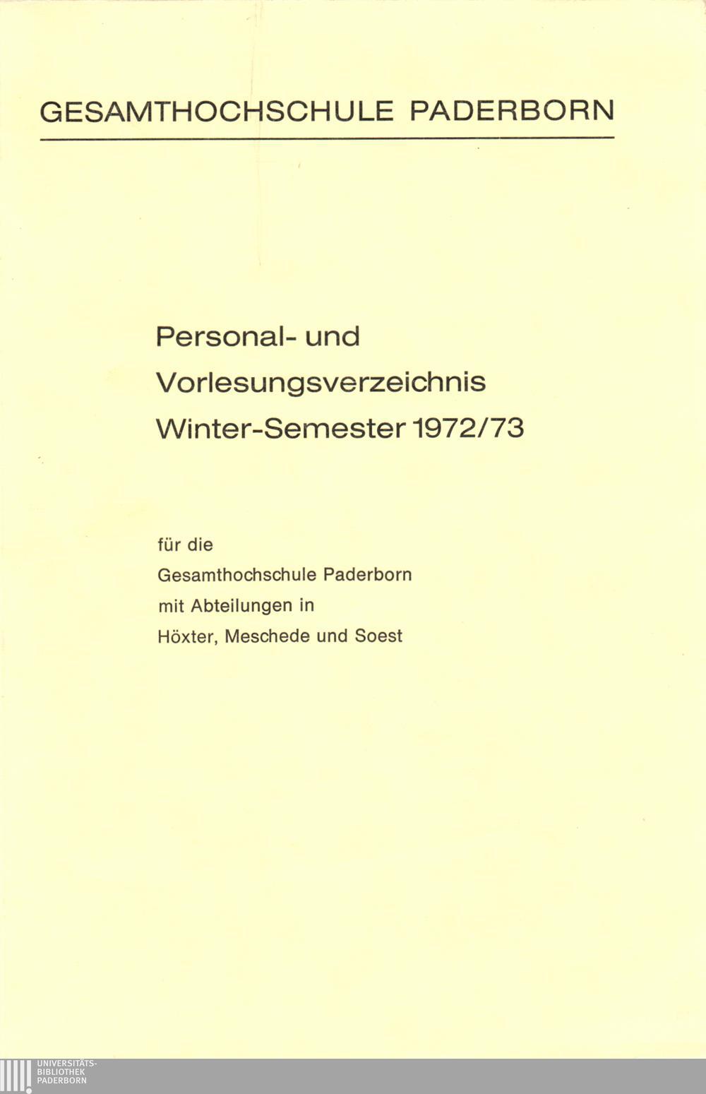 Personal- und Vorlesungsverzeichnis für die Gesamthochschule Paderborn