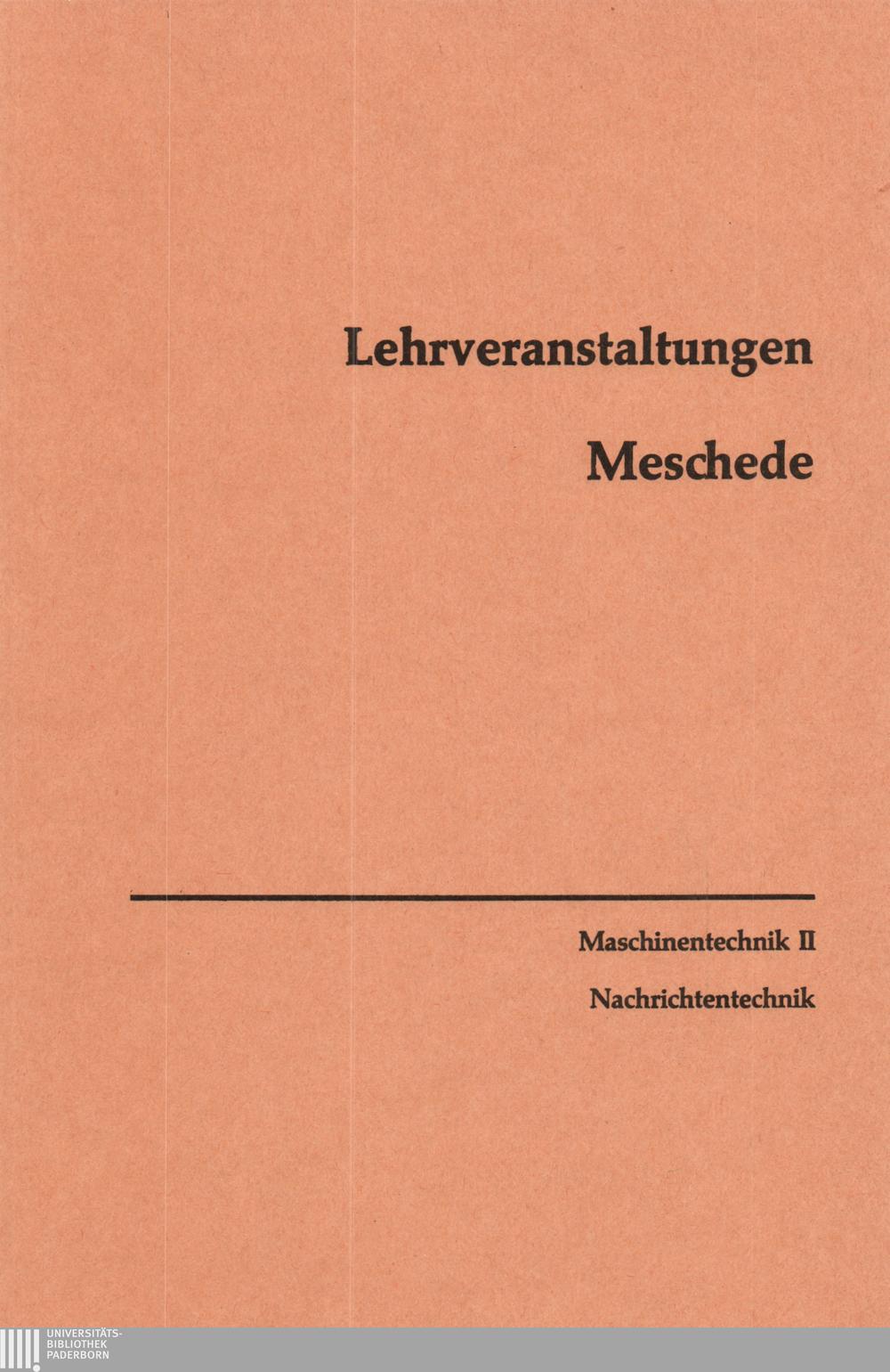 Personal- und Vorlesungsverzeichnis für die Gesamthochschule Paderborn