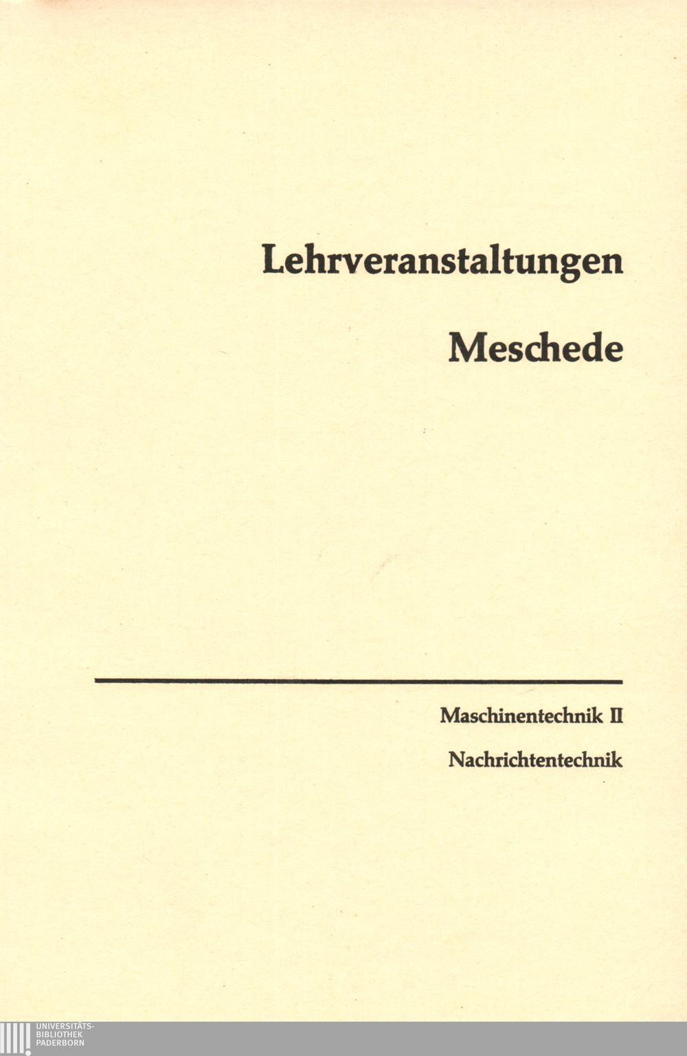Personal- und Vorlesungsverzeichnis für die Gesamthochschule Paderborn