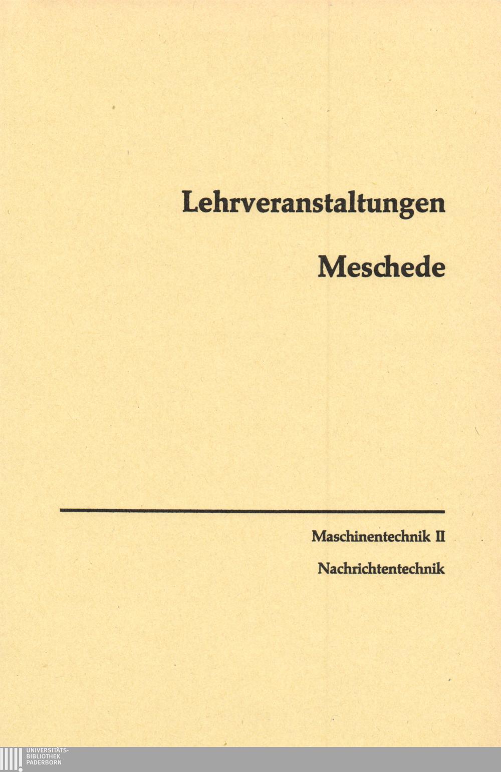Personal- und Vorlesungsverzeichnis für die Gesamthochschule Paderborn