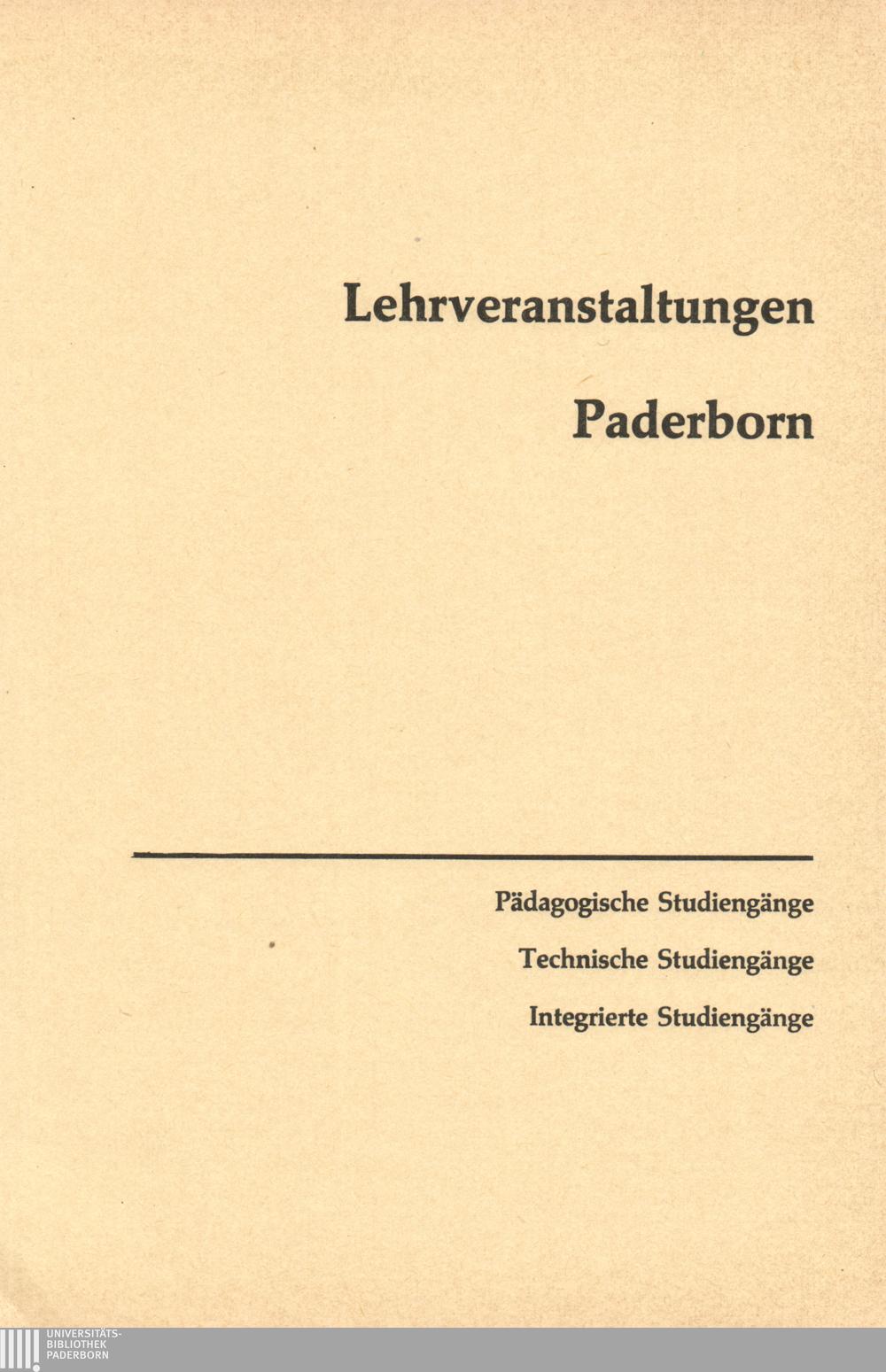Personal- und Vorlesungsverzeichnis für die Gesamthochschule Paderborn