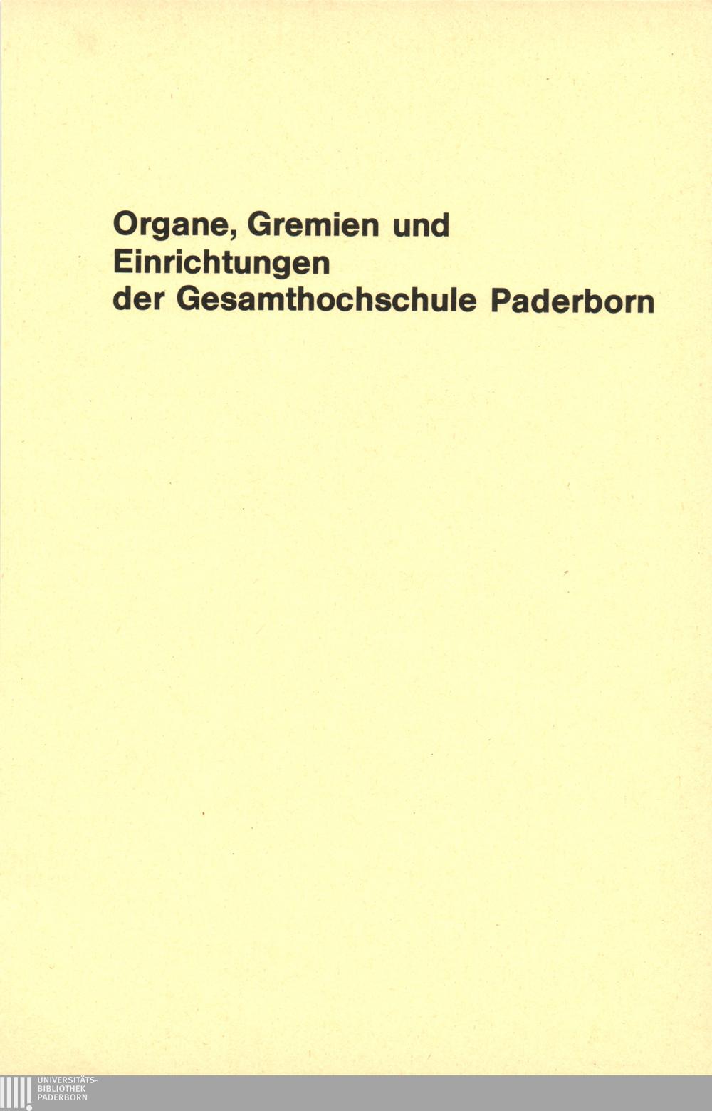 Personal- und Vorlesungsverzeichnis für die Gesamthochschule Paderborn