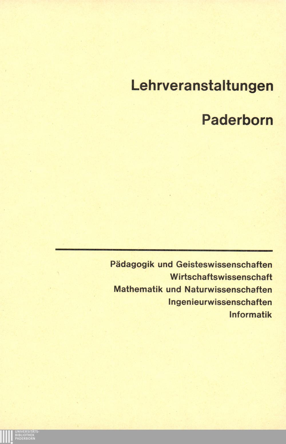 Personal- und Vorlesungsverzeichnis für die Universität Paderborn