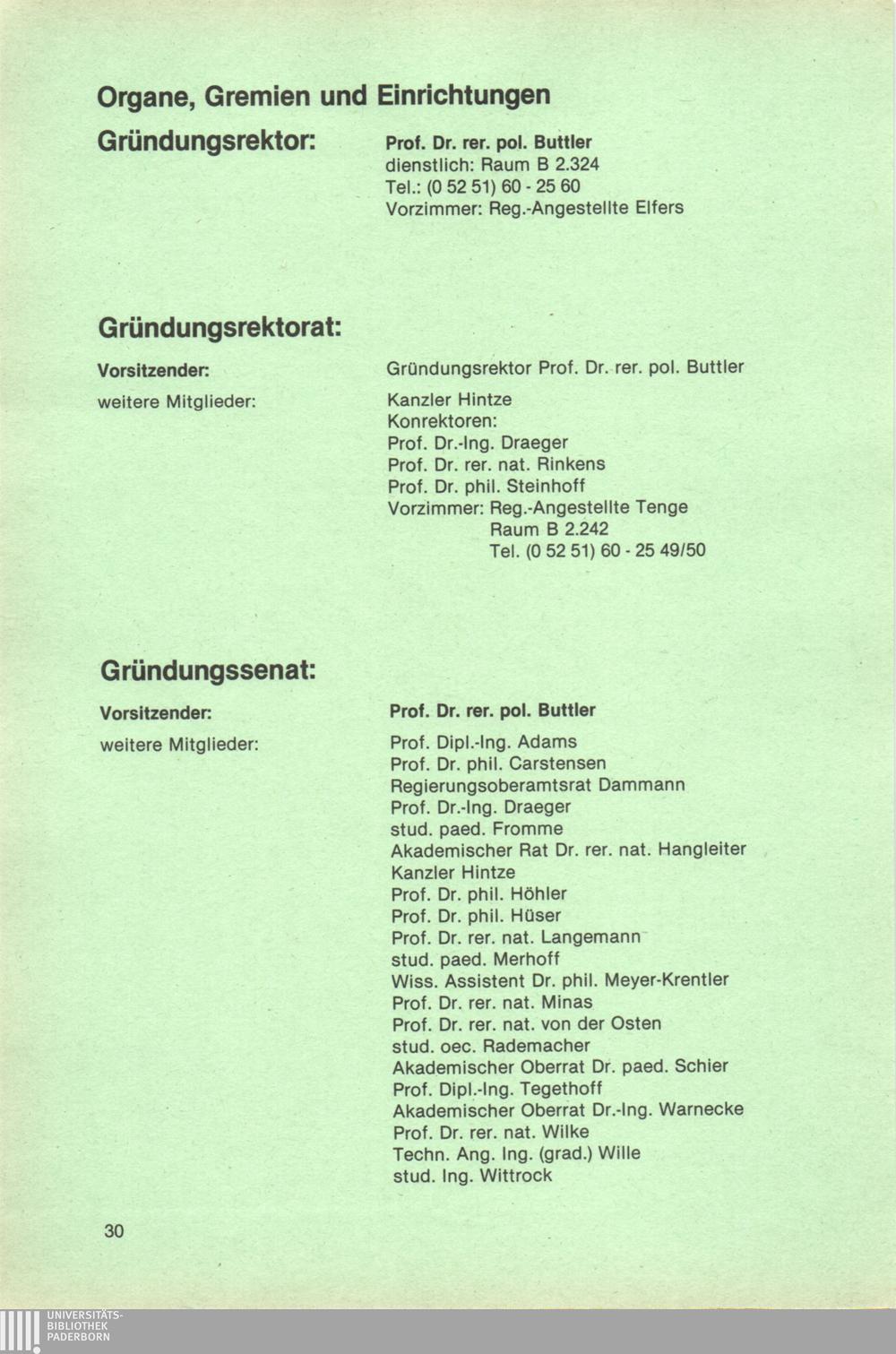Gründungsrektor, Gründungsrektorat, Gründungssenat