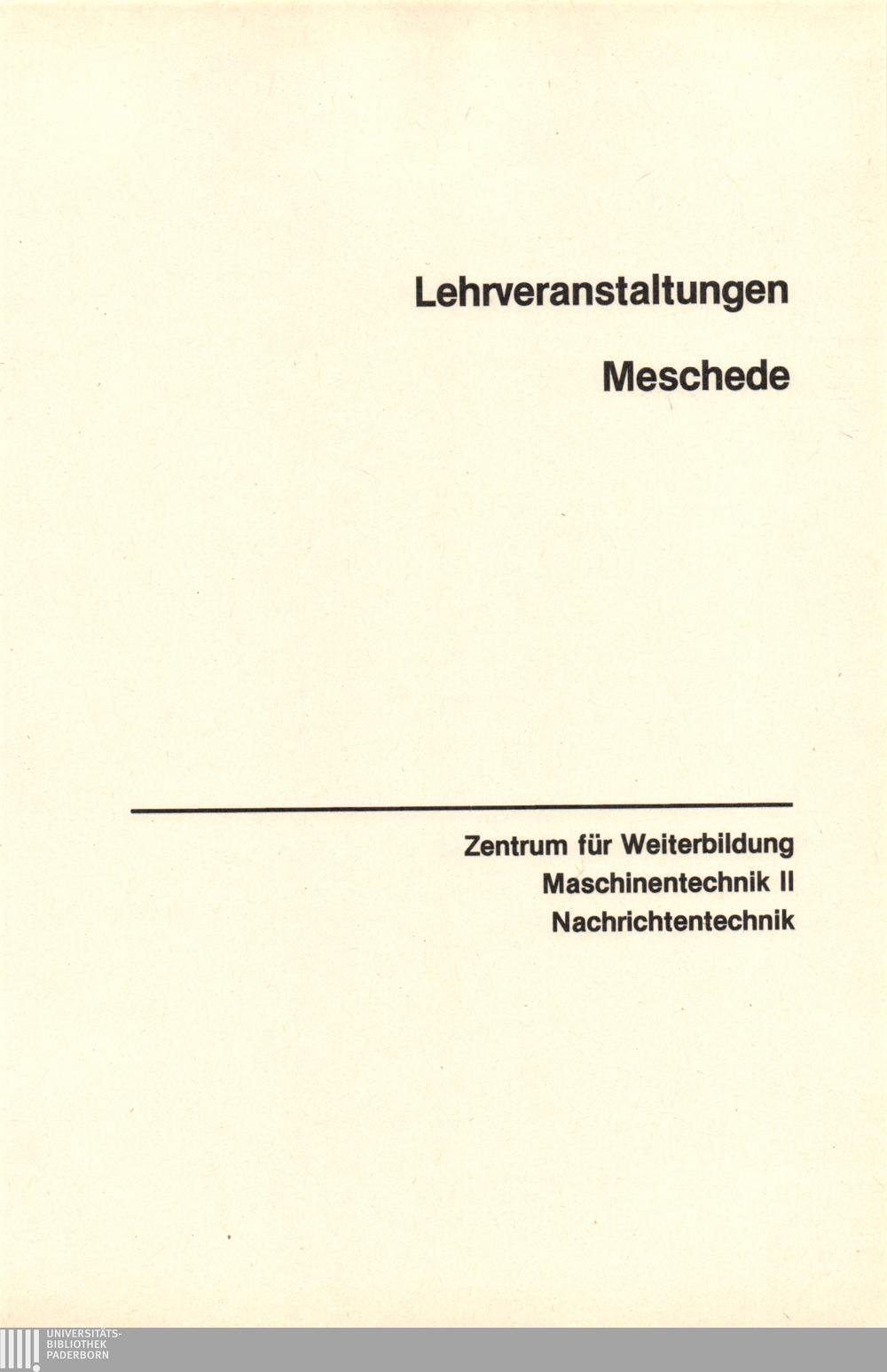 Personal- und Vorlesungsverzeichnis für die Universität Paderborn