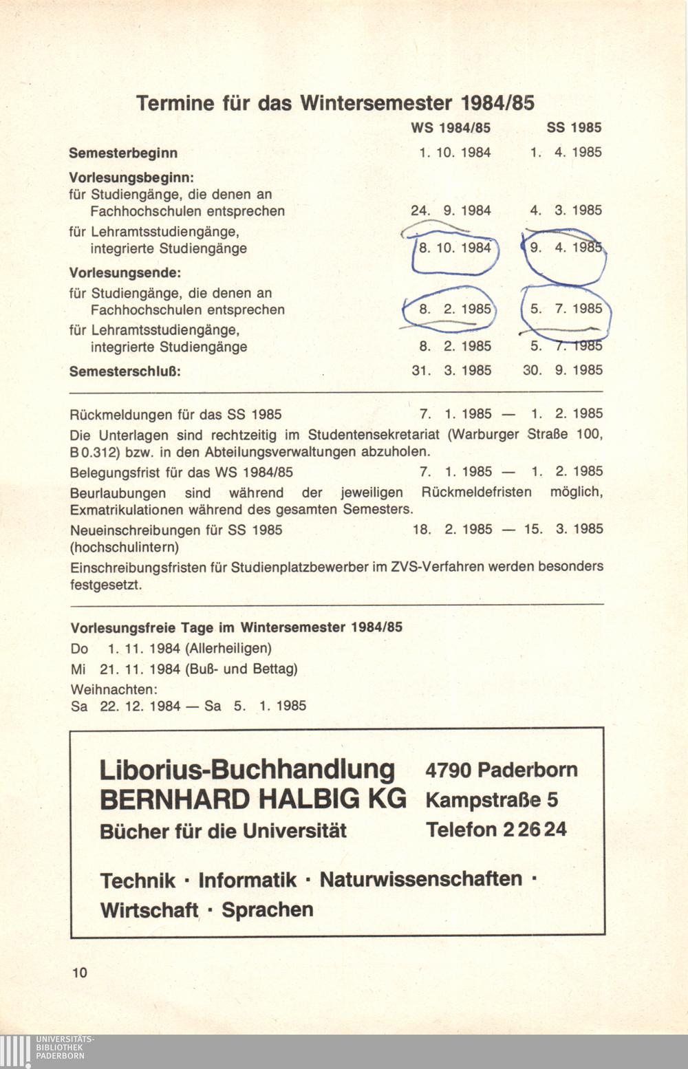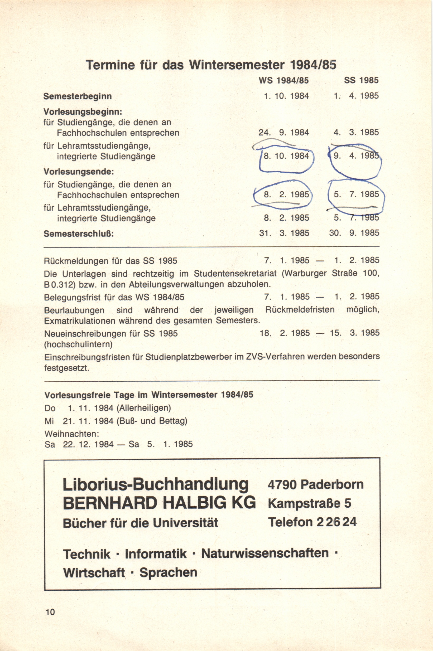 Personal- und Vorlesungsverzeichnis für die Universität Paderborn