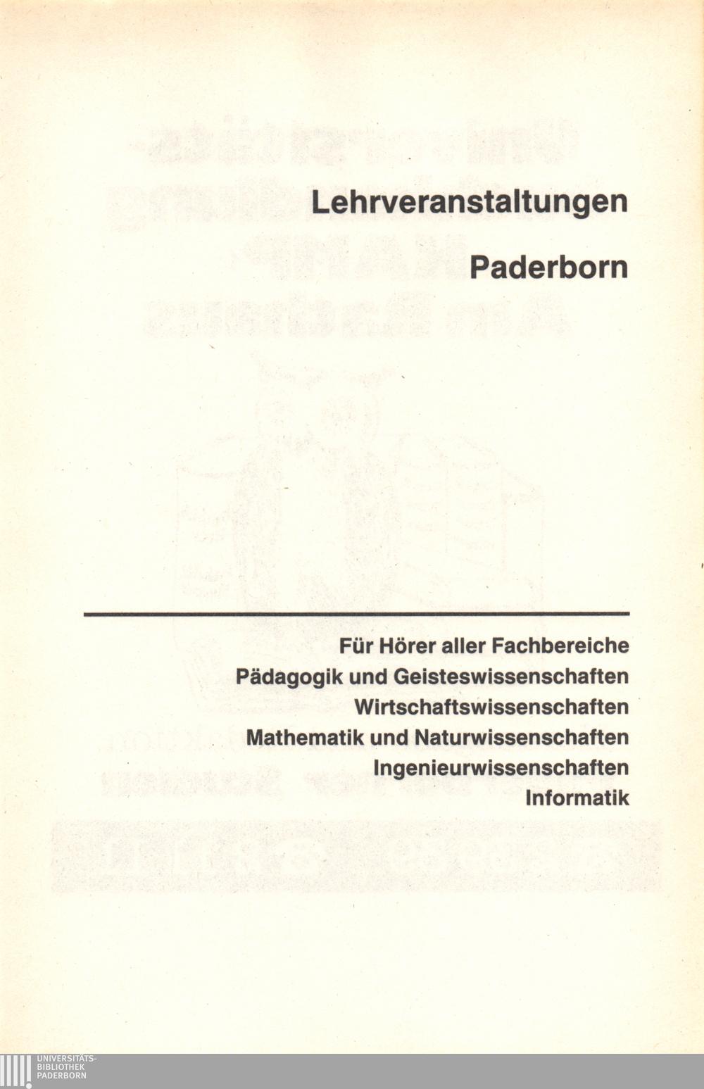 Personal- und Vorlesungsverzeichnis für die Universität Paderborn