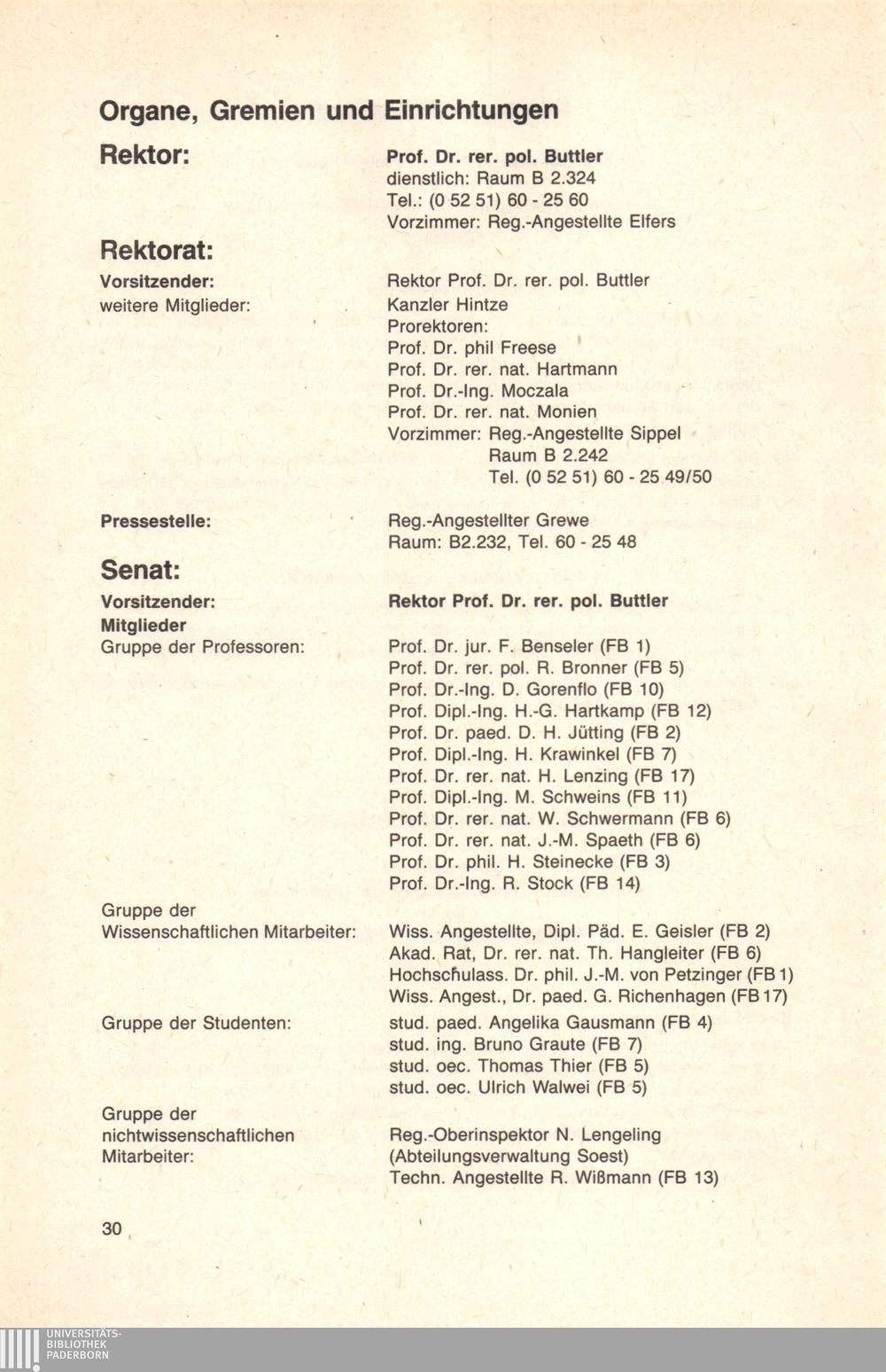 Personal- und Vorlesungsverzeichnis für die Universität Paderborn