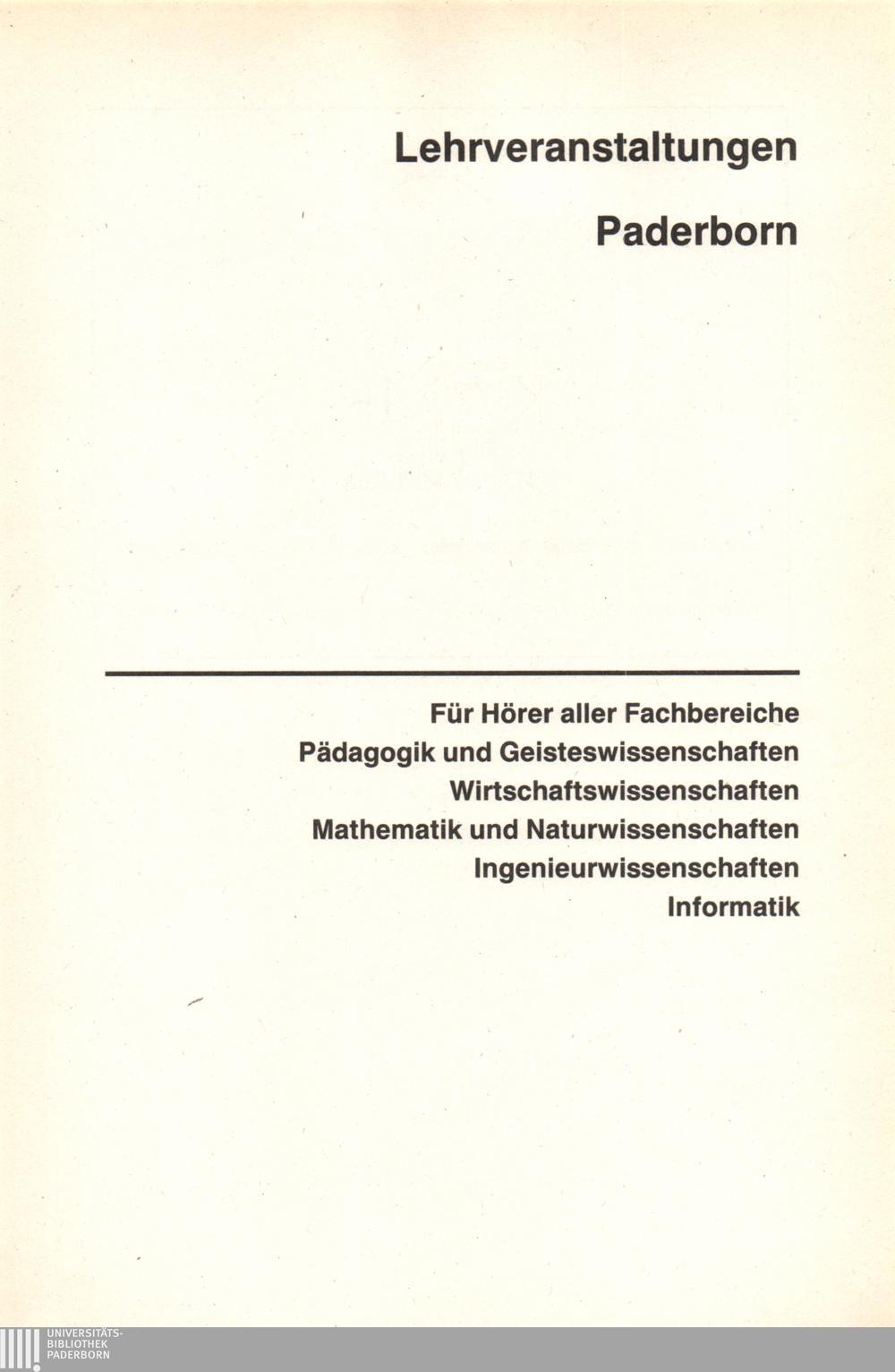 Personal- und Vorlesungsverzeichnis für die Universität Paderborn