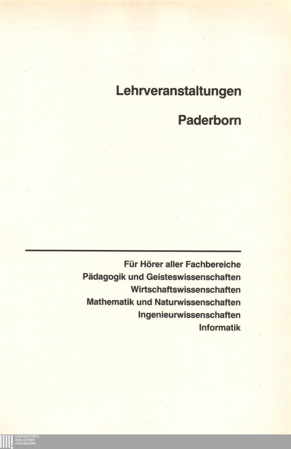 Personal- und Vorlesungsverzeichnis für die Universität Paderborn