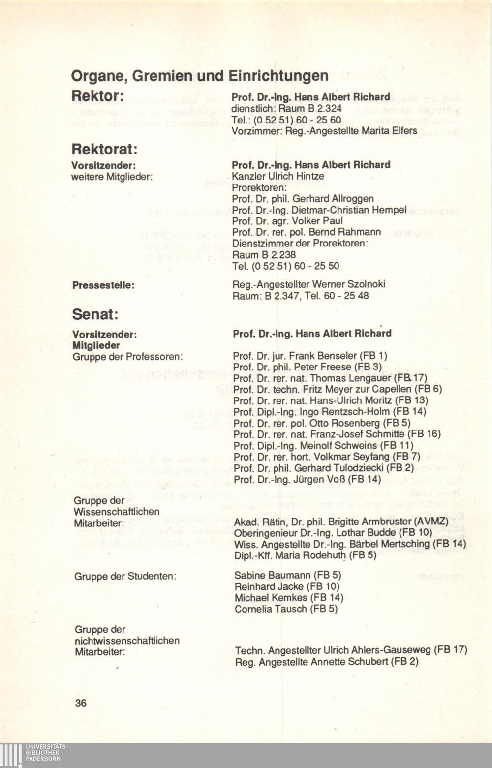 Personal- und Vorlesungsverzeichnis für die Universität Paderborn