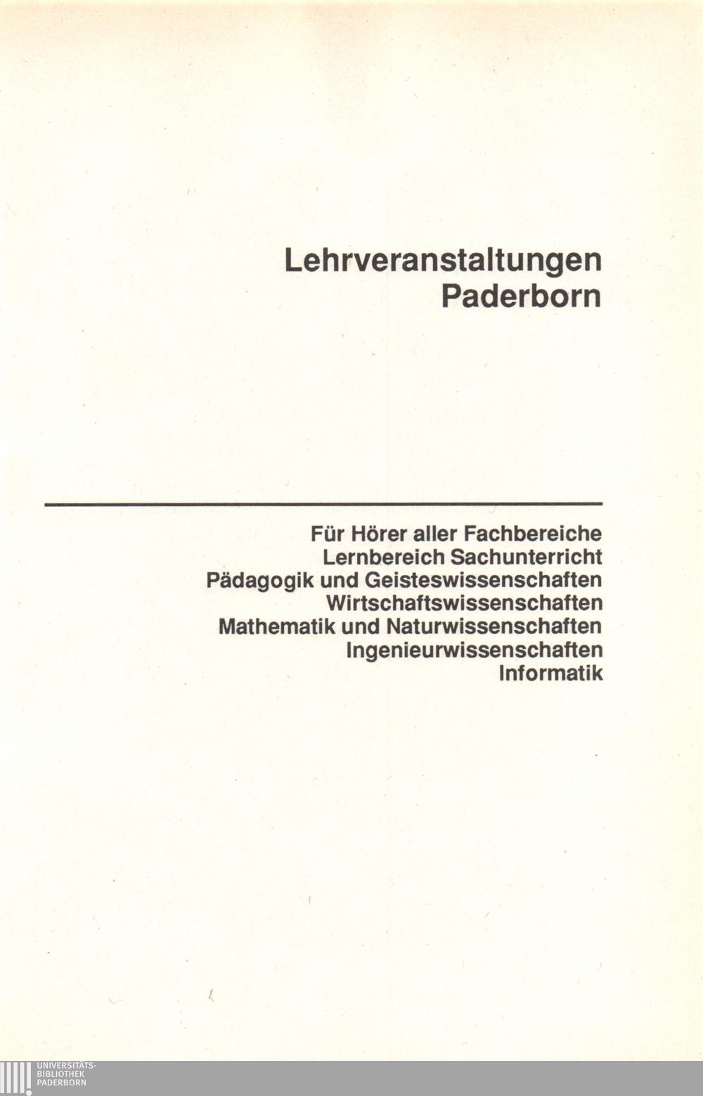 Personal- und Vorlesungsverzeichnis für die Universität Paderborn