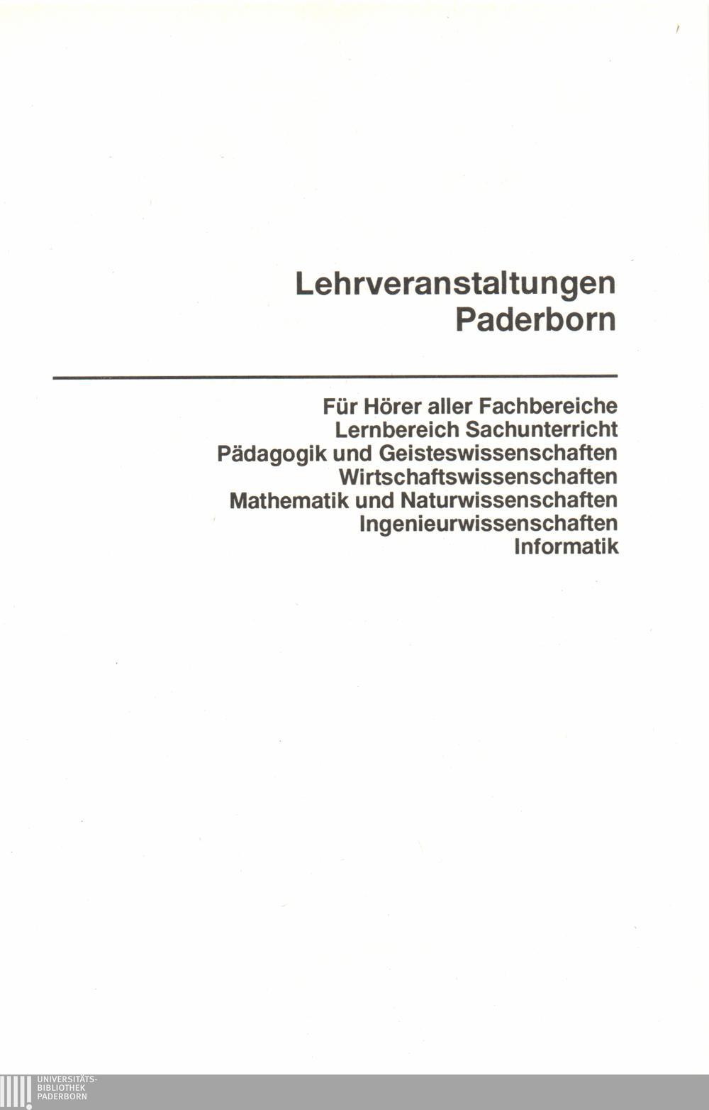Personal- und Vorlesungsverzeichnis für die Universität Paderborn