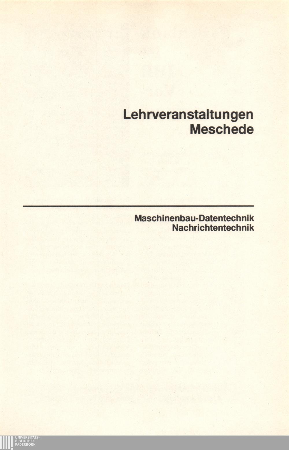 Personal- und Vorlesungsverzeichnis für die Universität Paderborn