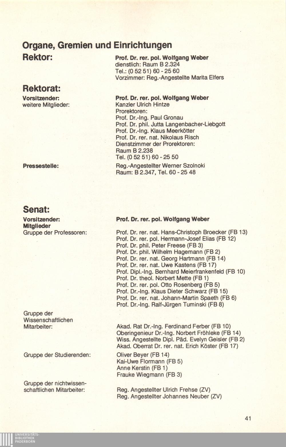 Personal- und Vorlesungsverzeichnis für die Universität Paderborn