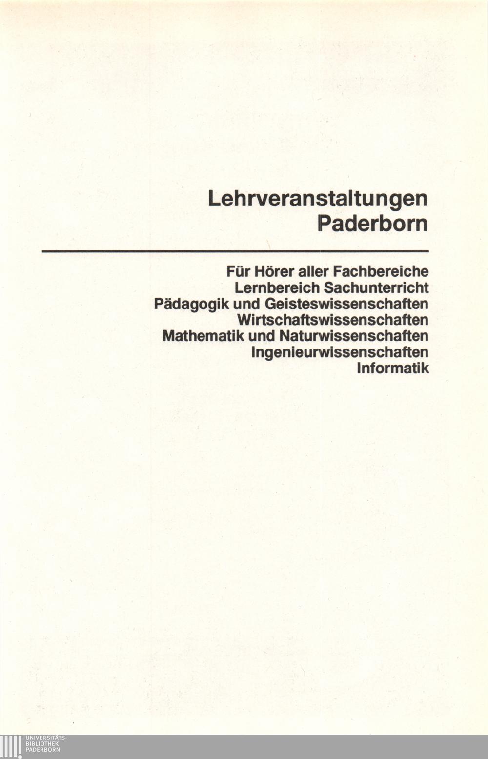 Personal- und Vorlesungsverzeichnis für die Universität Paderborn