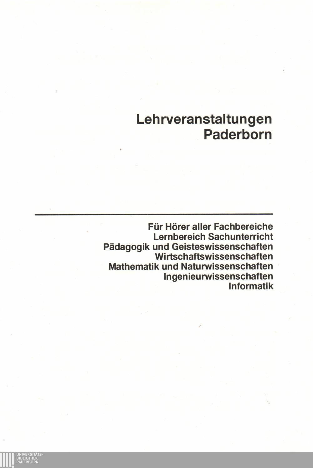 Personal- und Vorlesungsverzeichnis für die Universität Paderborn