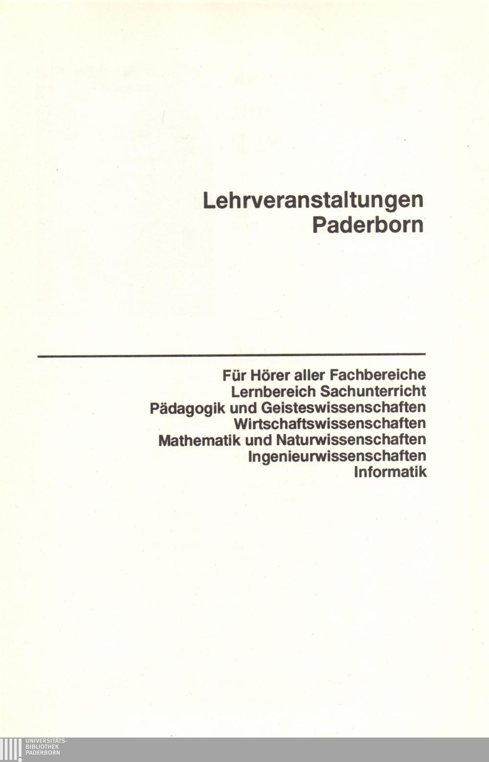 Personal- und Vorlesungsverzeichnis für die Universität Paderborn