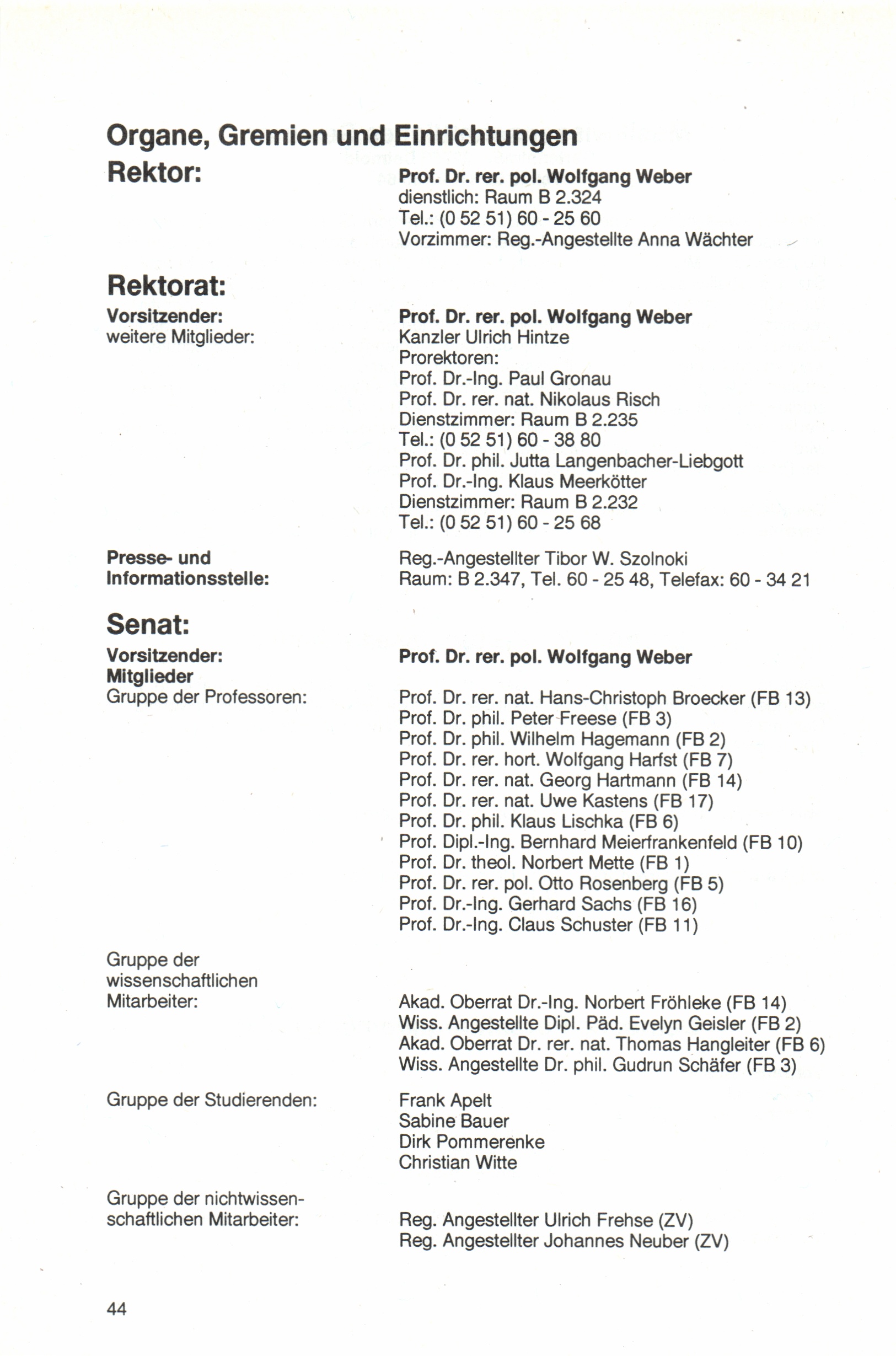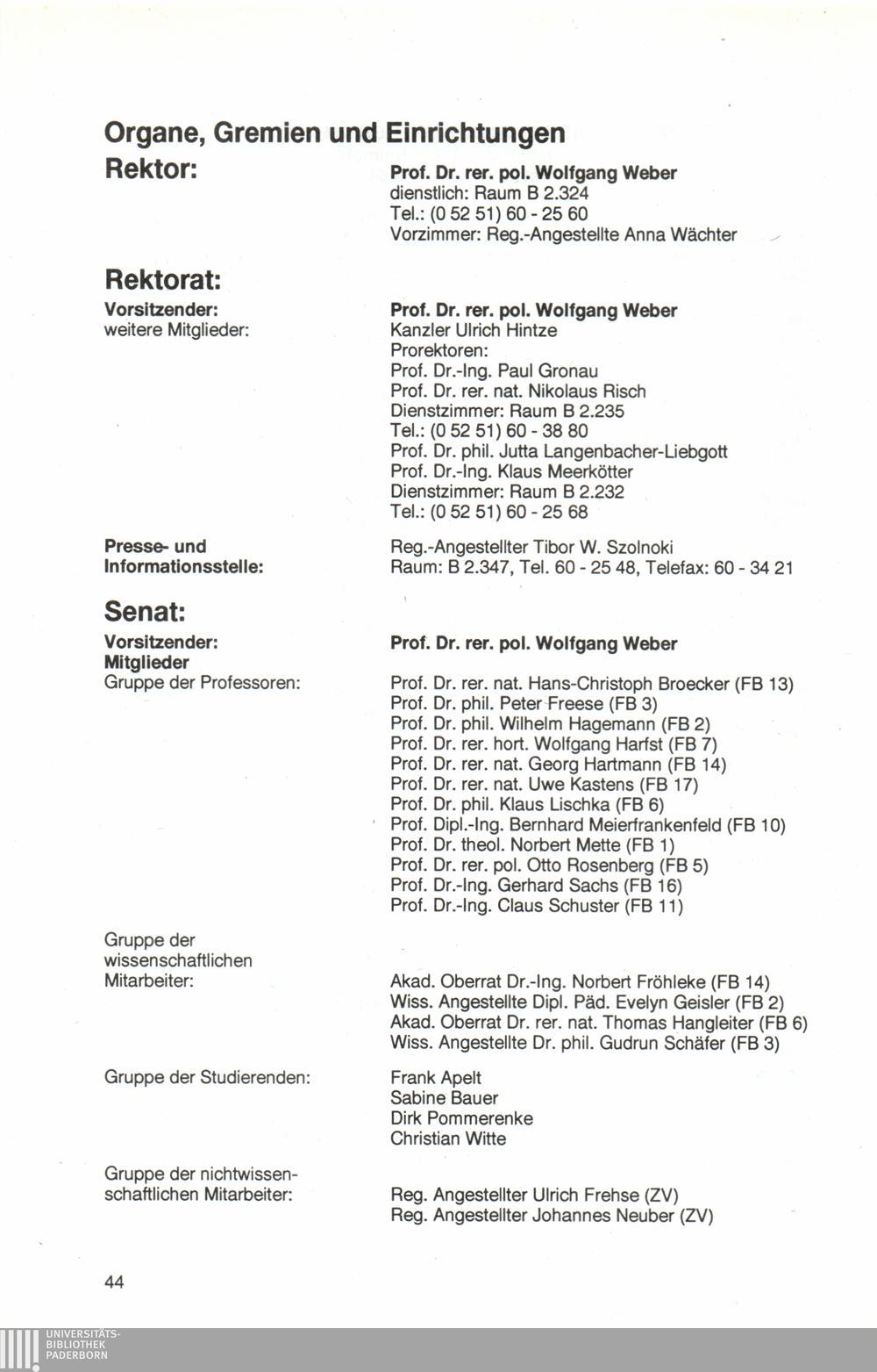 Personal- und Vorlesungsverzeichnis für die Universität Paderborn