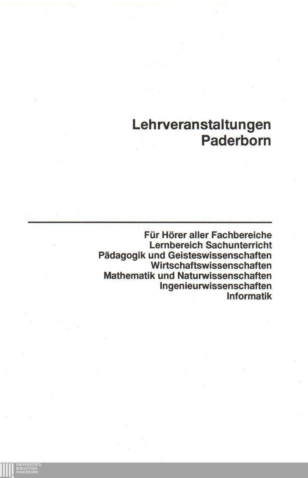Personal- und Vorlesungsverzeichnis für die Universität Paderborn