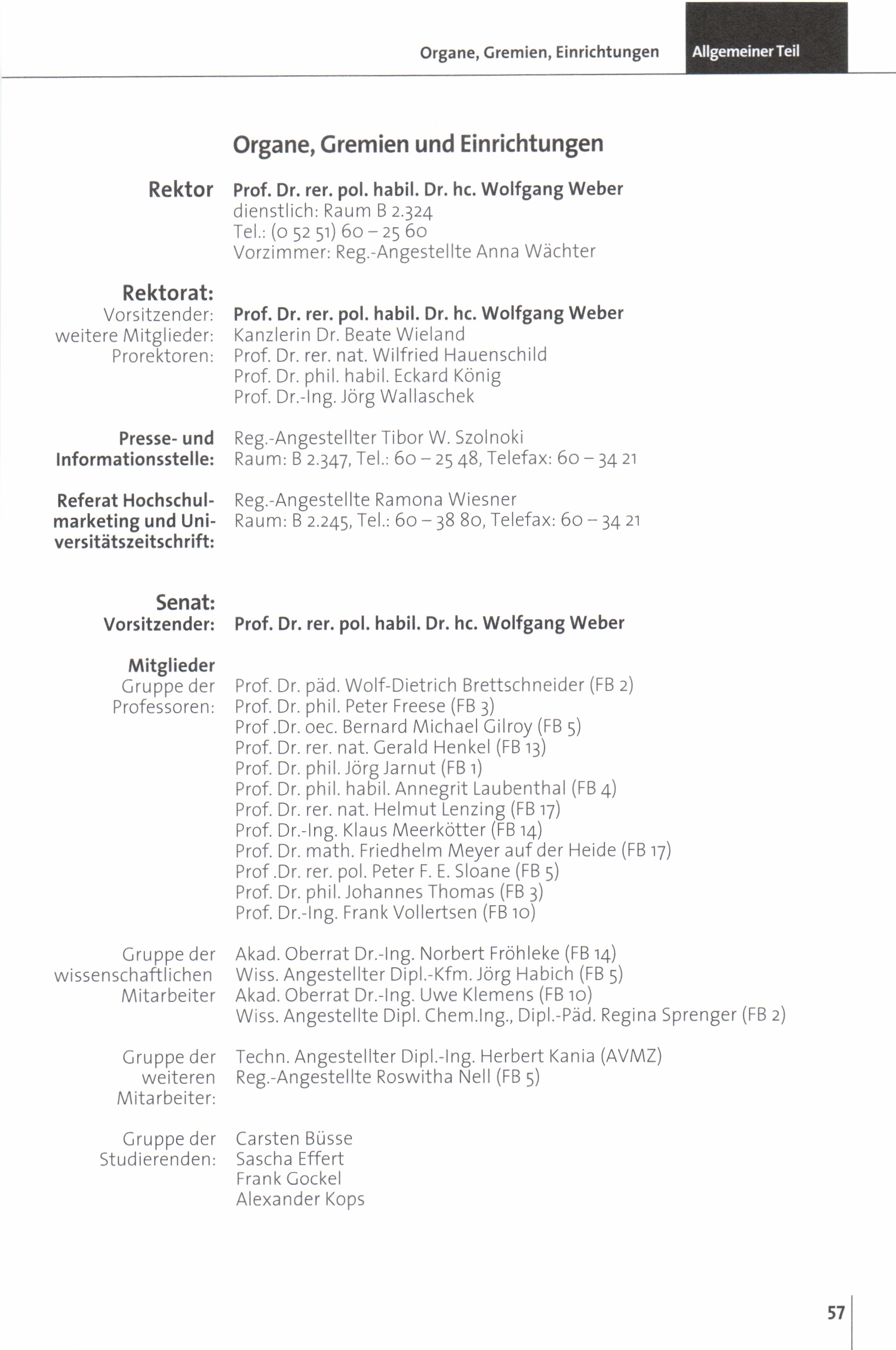 Rektor, Rektorat, Senat
