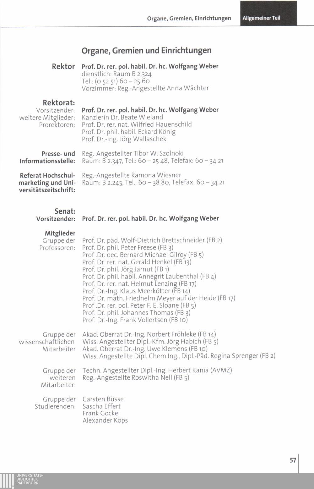 Personal- und Vorlesungsverzeichnis für die Universität Paderborn