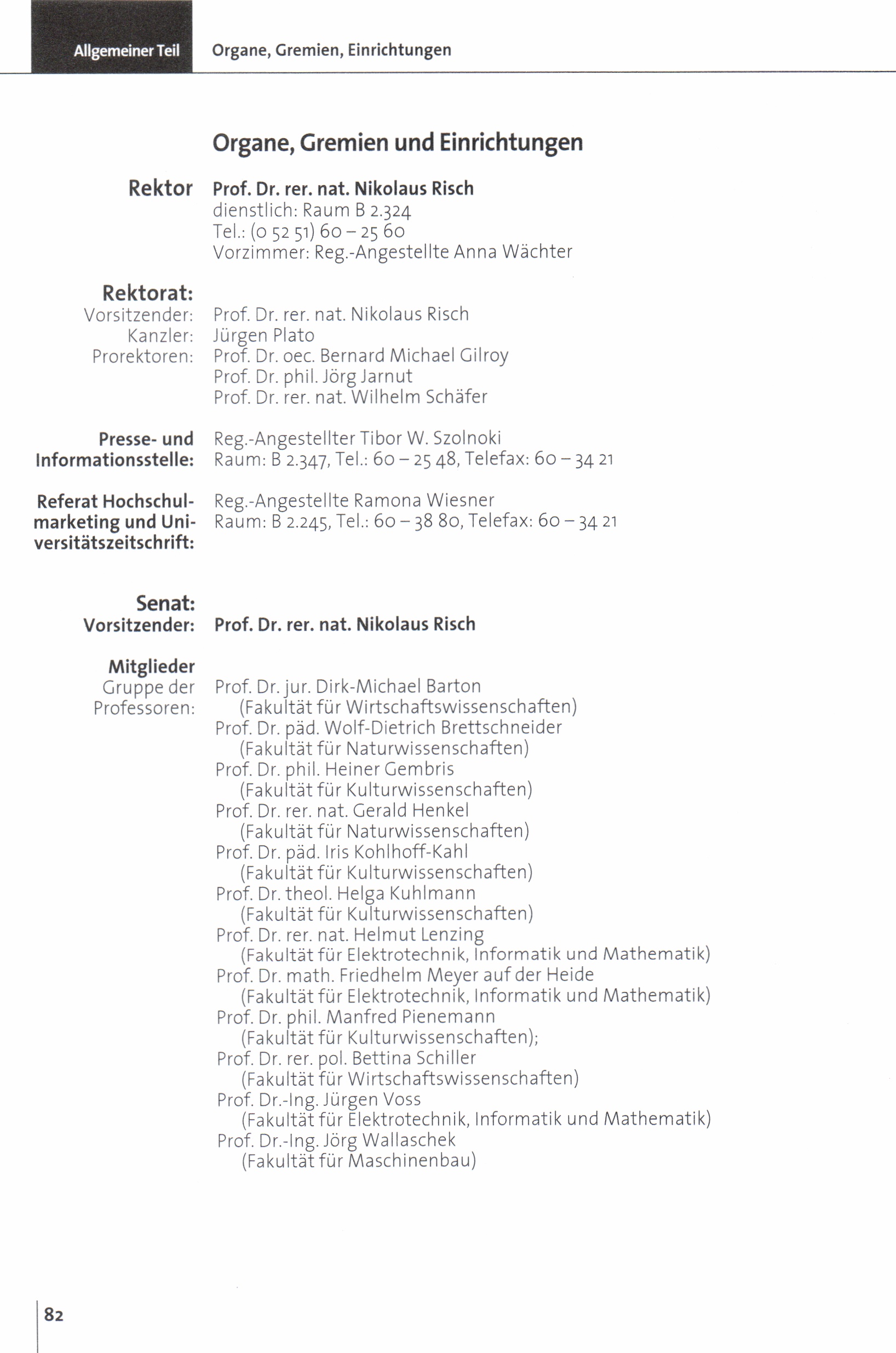 Rektor, Rektorat, Senat