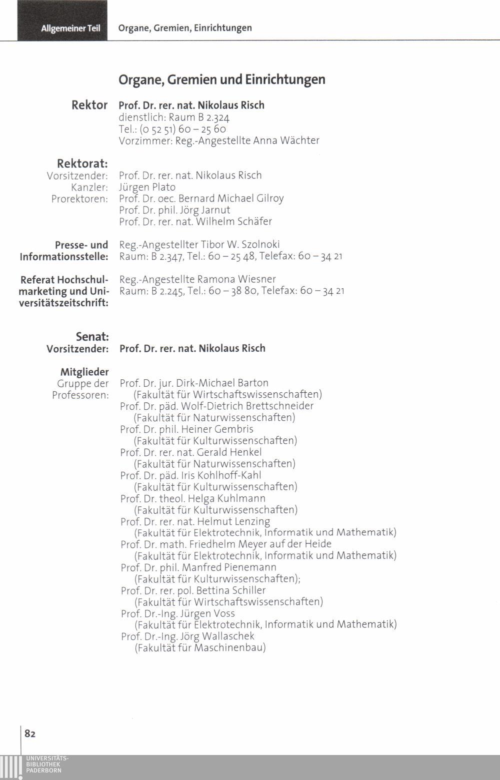 Personal- und Vorlesungsverzeichnis für die Universität Paderborn