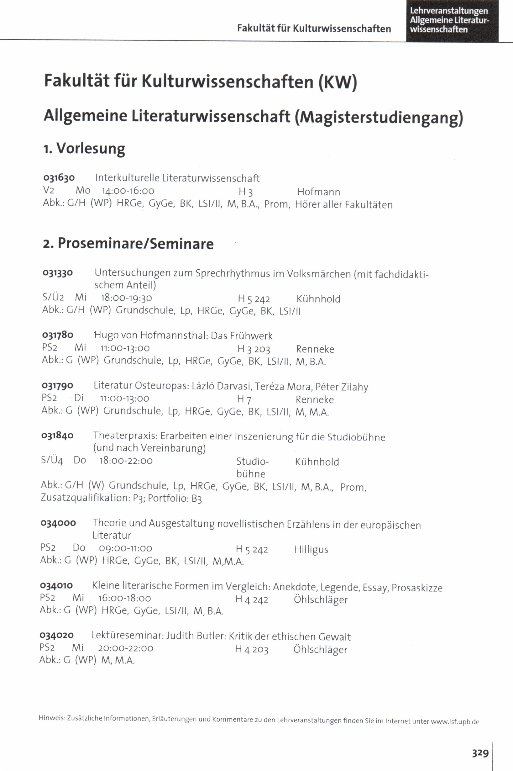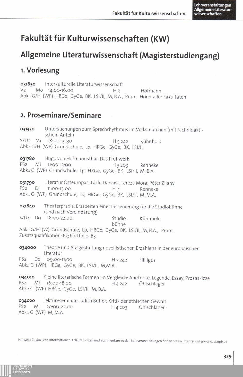 Personal- und Vorlesungsverzeichnis für die Universität Paderborn