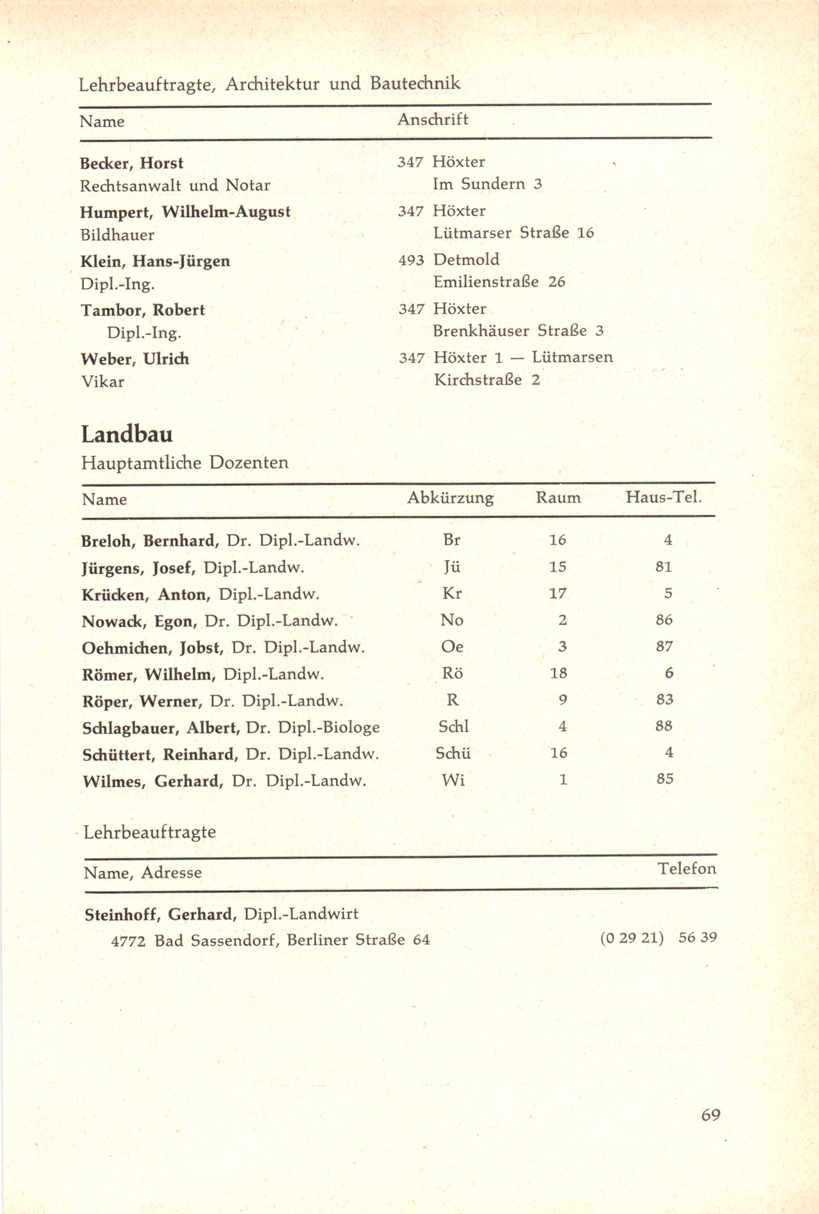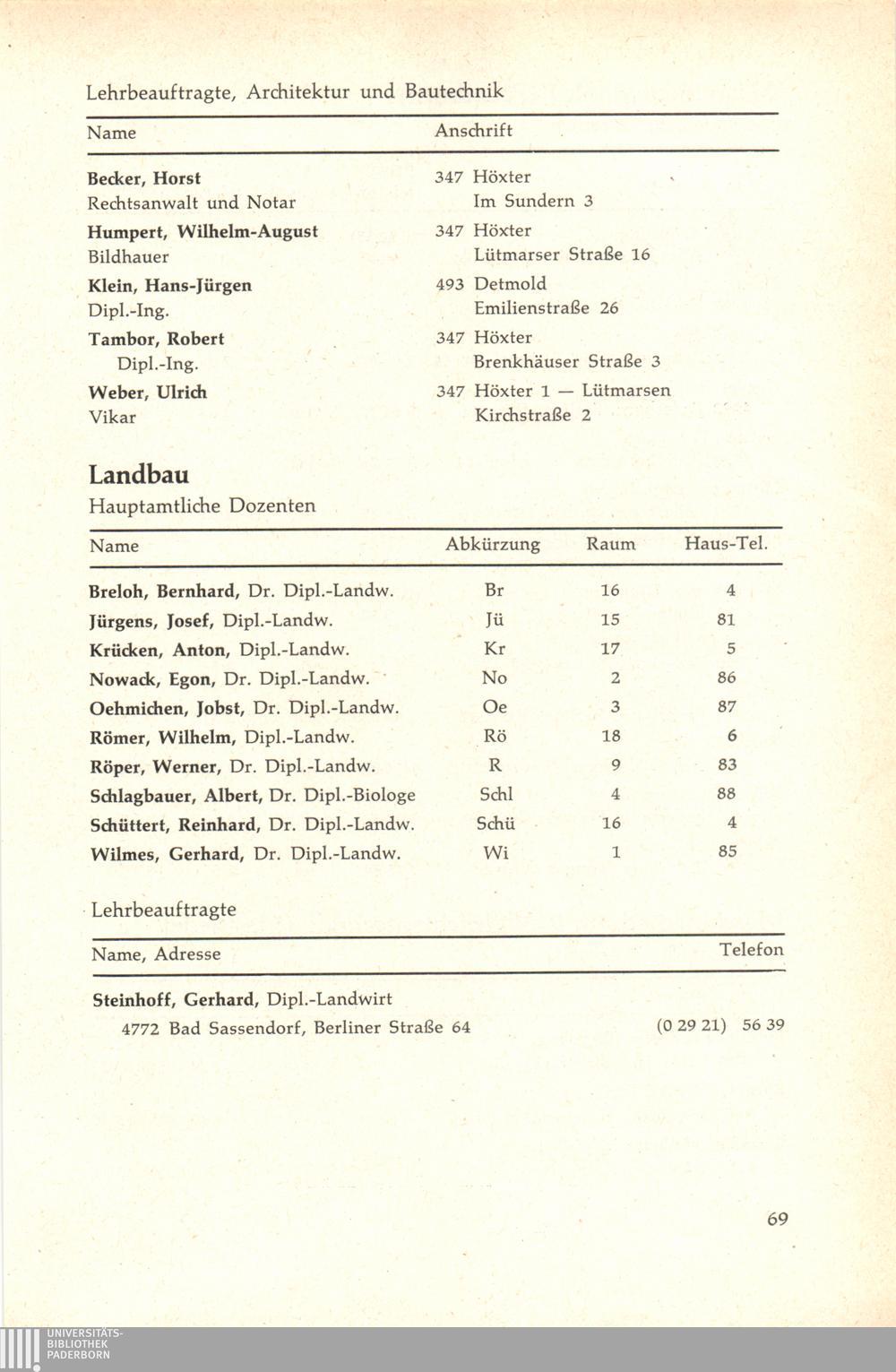 Personal- und Vorlesungsverzeichnis für die Gesamthochschule Paderborn