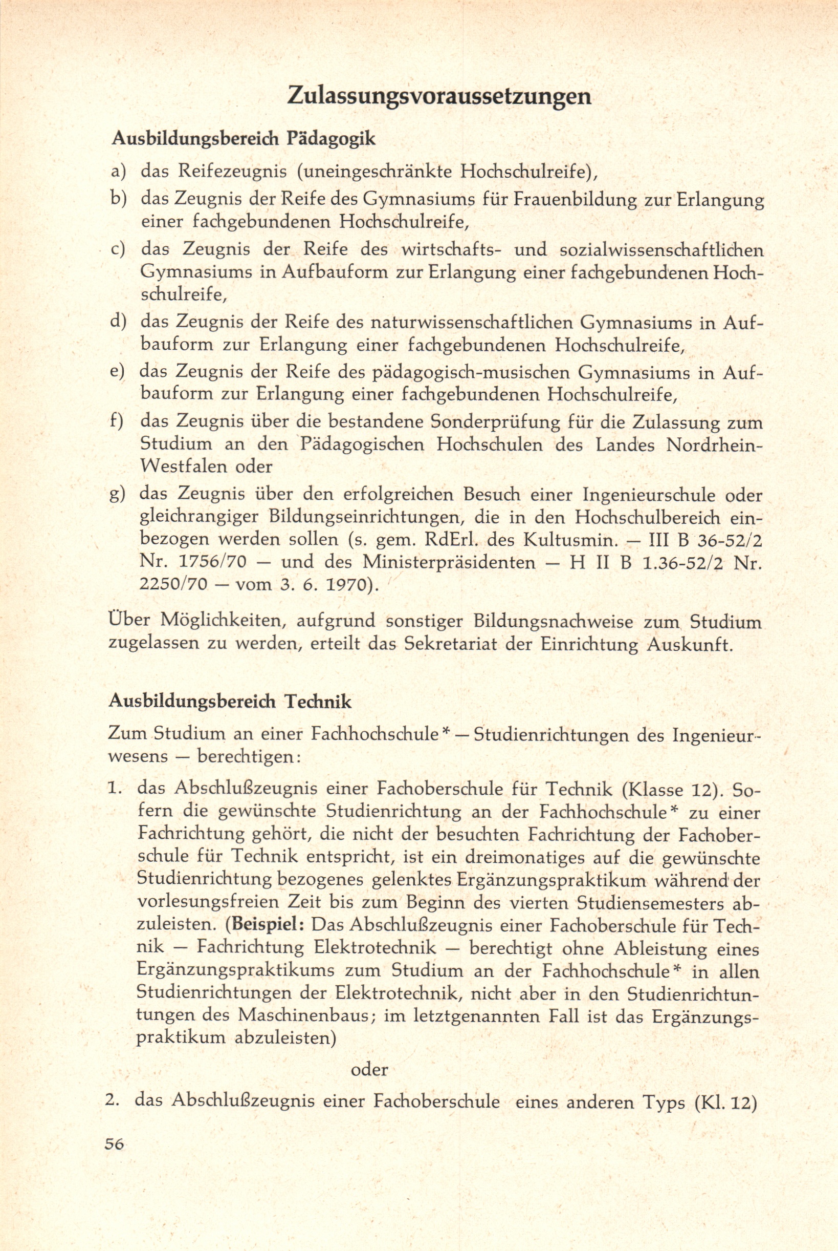 Zulassungsvoraussetzungen
