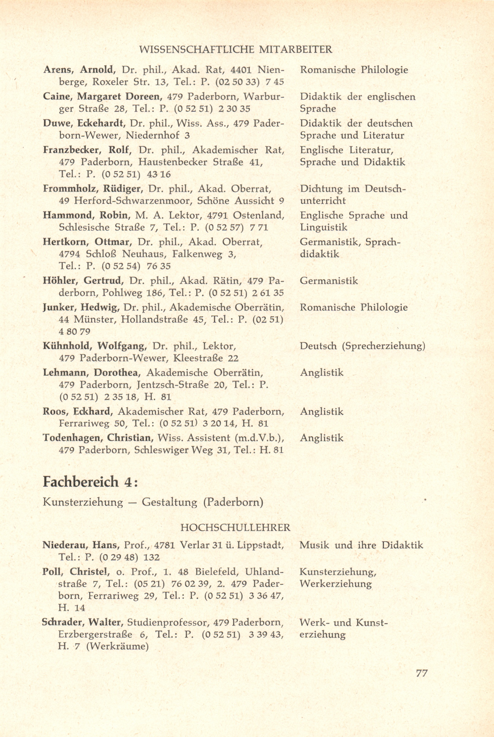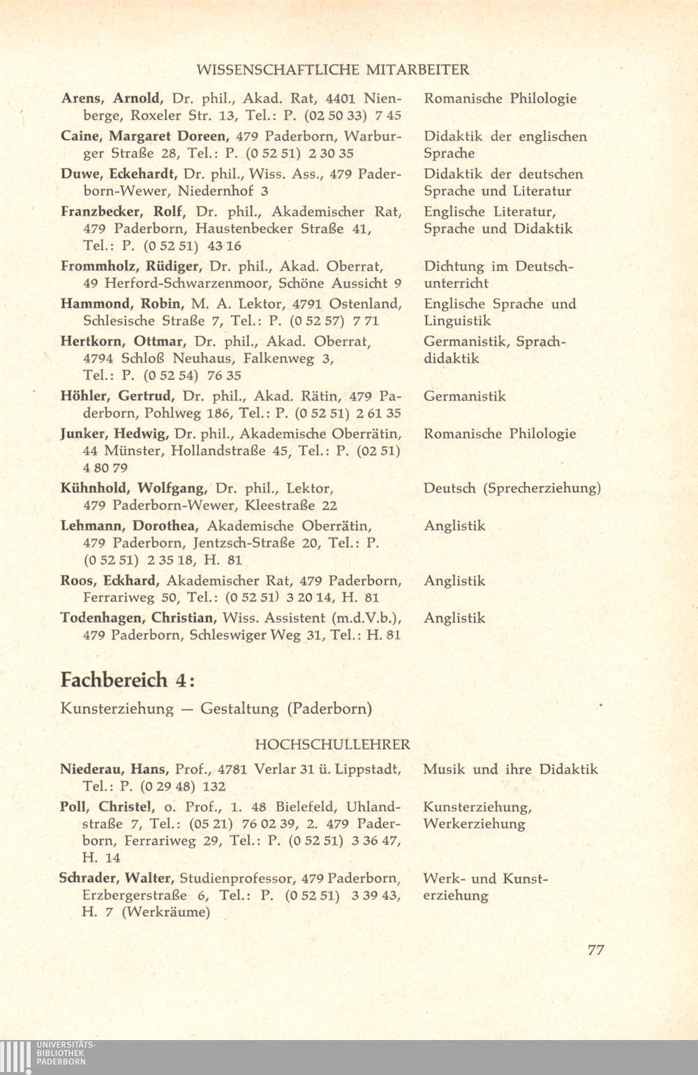 Personal- und Vorlesungsverzeichnis für die Gesamthochschule Paderborn